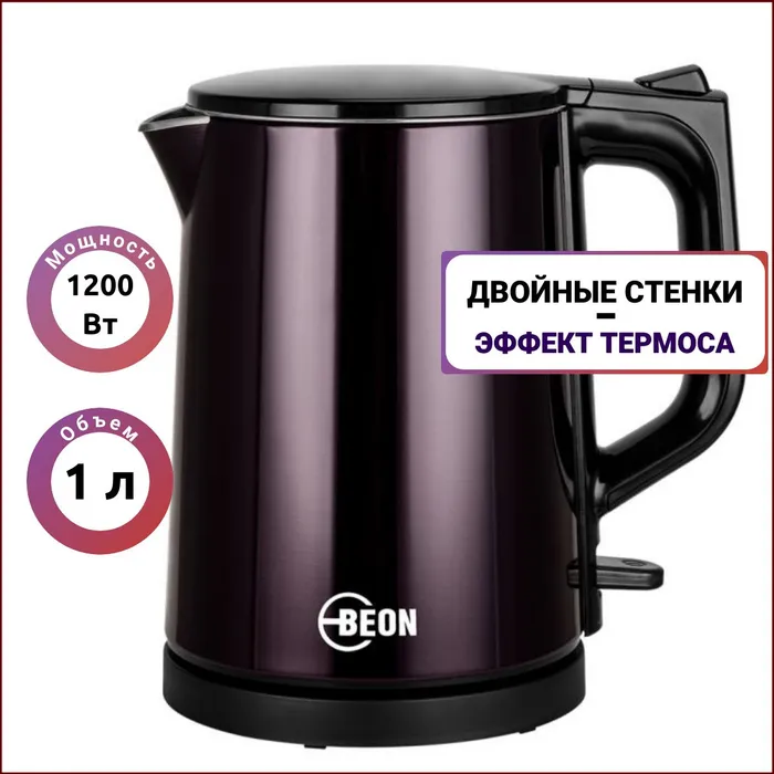 Чайник электрический BEON BN-3041, 1л, 1200Вт, бесшовная колба, двойные стенки