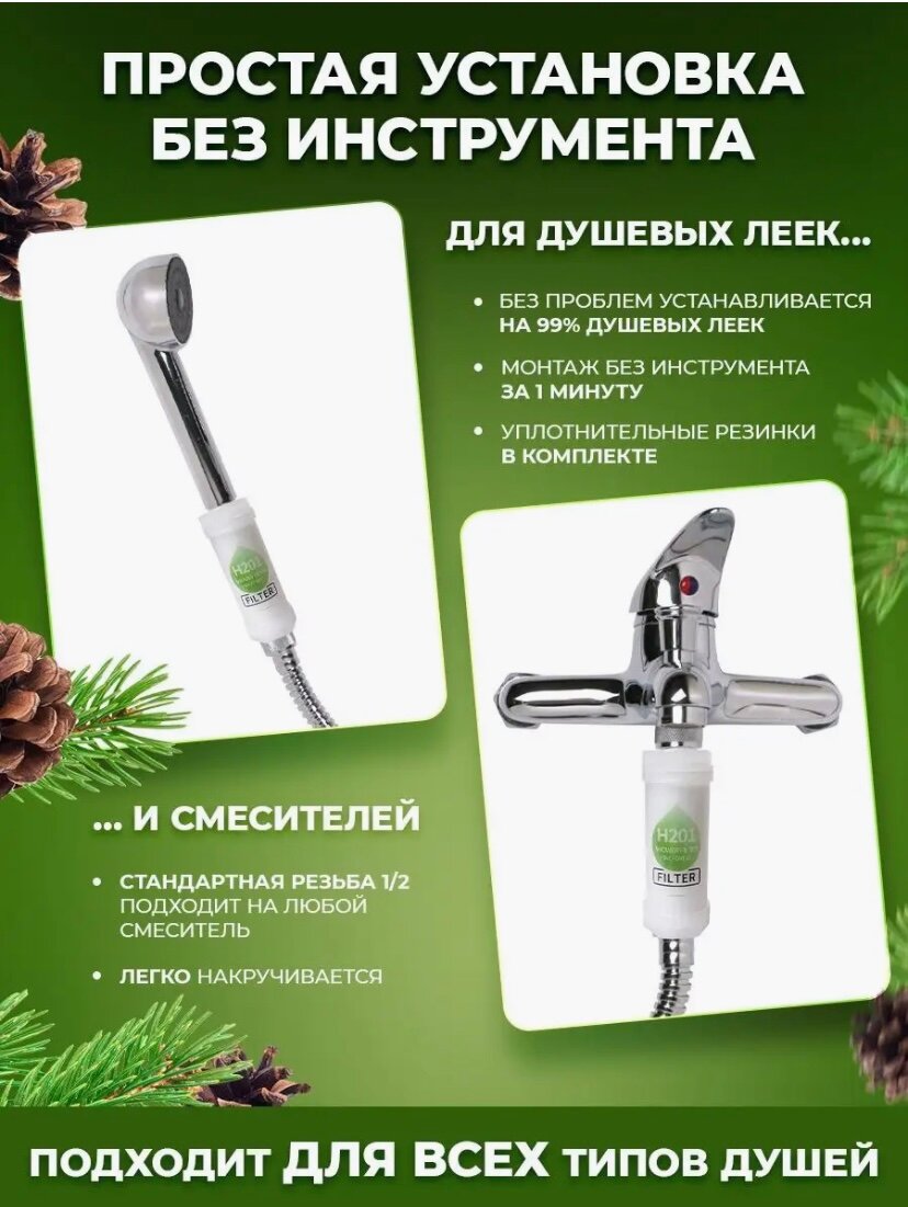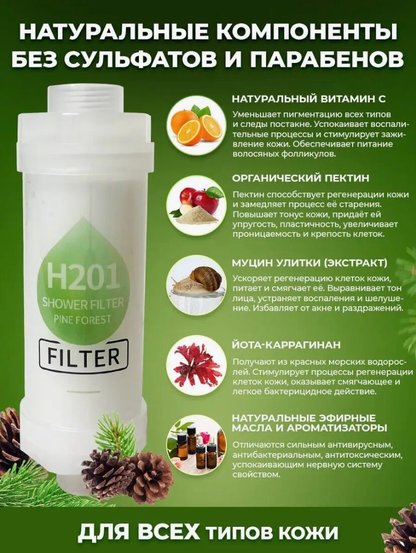 Фильтр для душа H2O1 с ароматом соснового леса, фильтр для воды ароматизированный информация: