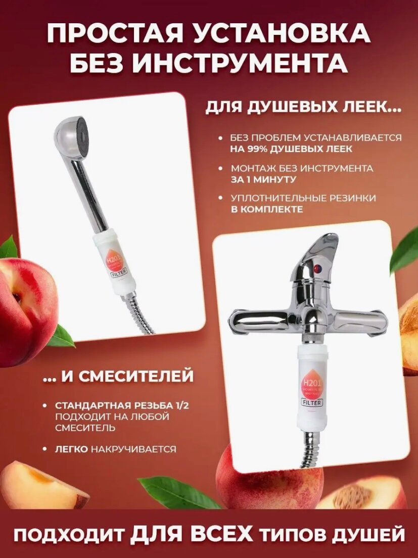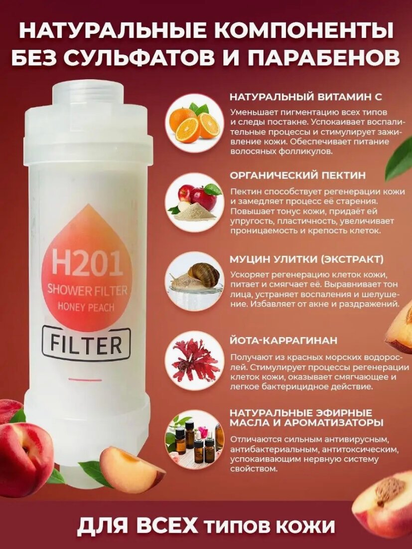 10 цен на Фильтр для душа H2O1 с ароматом медовый персик, фильтр для воды ароматизированный