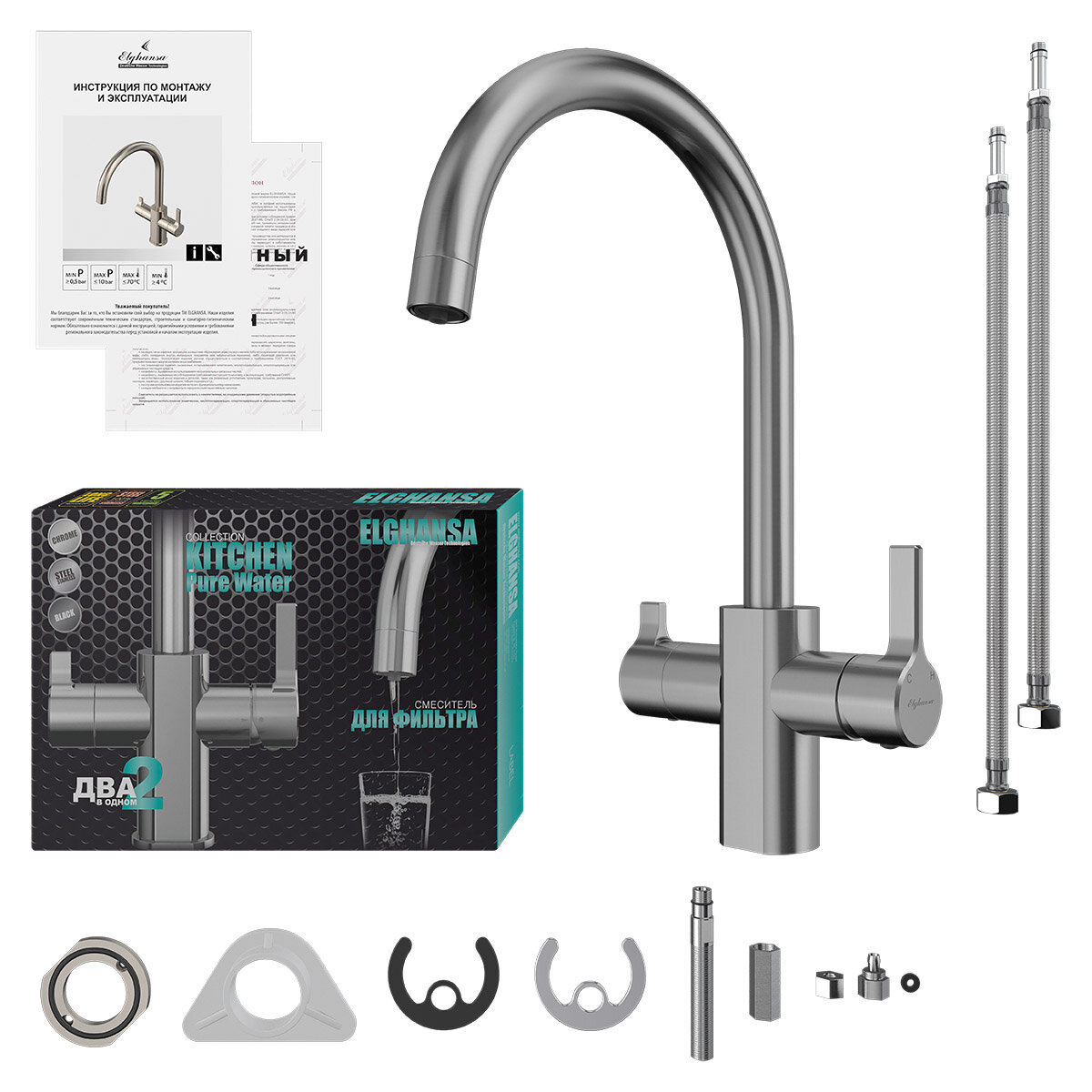 Смеситель для кухни однорычажный (для фильтра) с боковым переключателем Elghansa 56B5511-Steel информация: