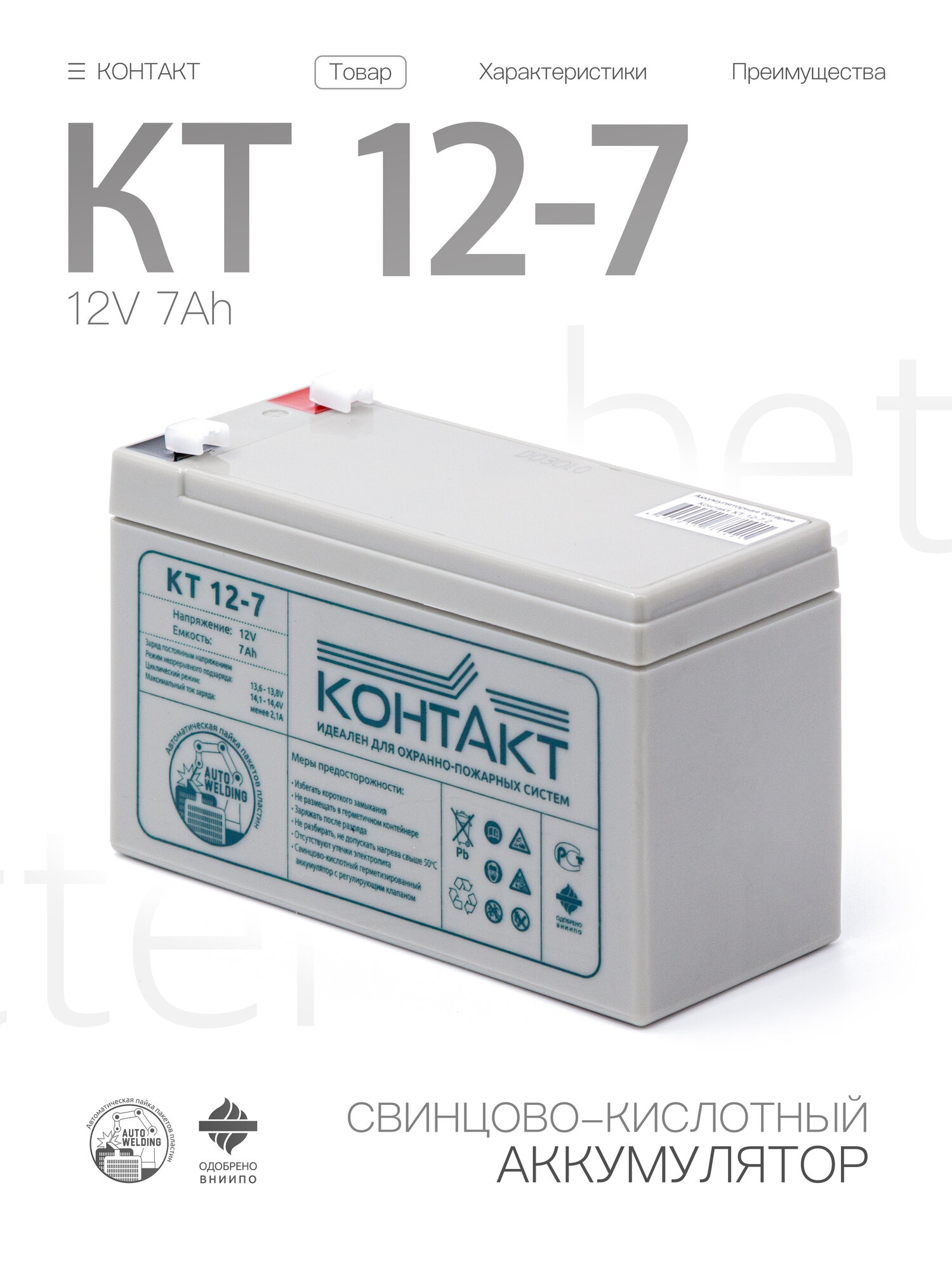Свинцово-кислотный аккумулятор контакт КТ 12-7 (12 В, 7.0 Ач) информация:
