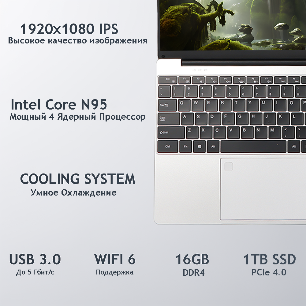 Отзывы на 15.6" Ноутбук для работы и учебы, Notebook, RAM 16 ГБ, SSD 1ТБ, IPS Full HD 1920x1080, Intel N95, Windows 10 pro, цвет Mid Gray, русская раскладка
