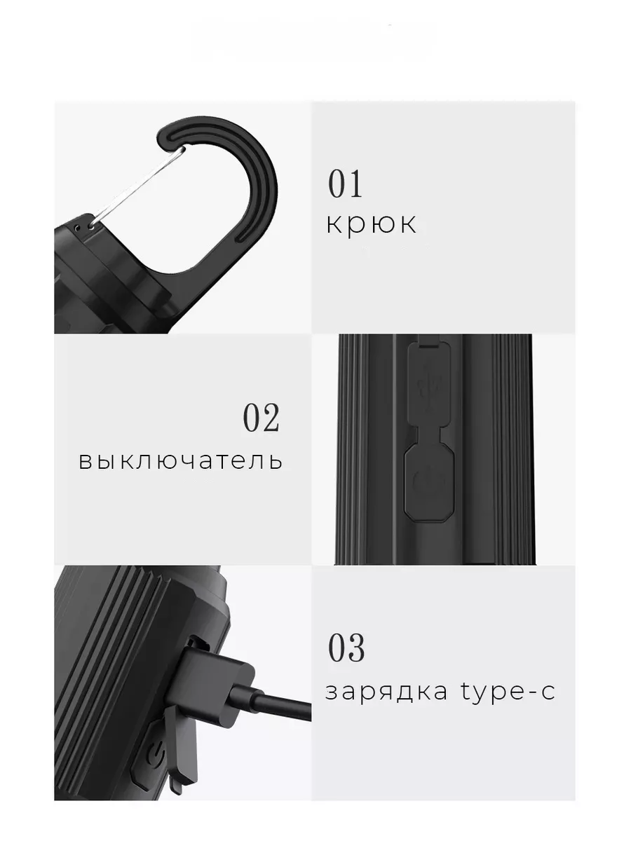 Фонарик ручной аккумуляторный светодиодный/фонарь переносной для ремонта автомобиля/ручной прожектор с магнитом