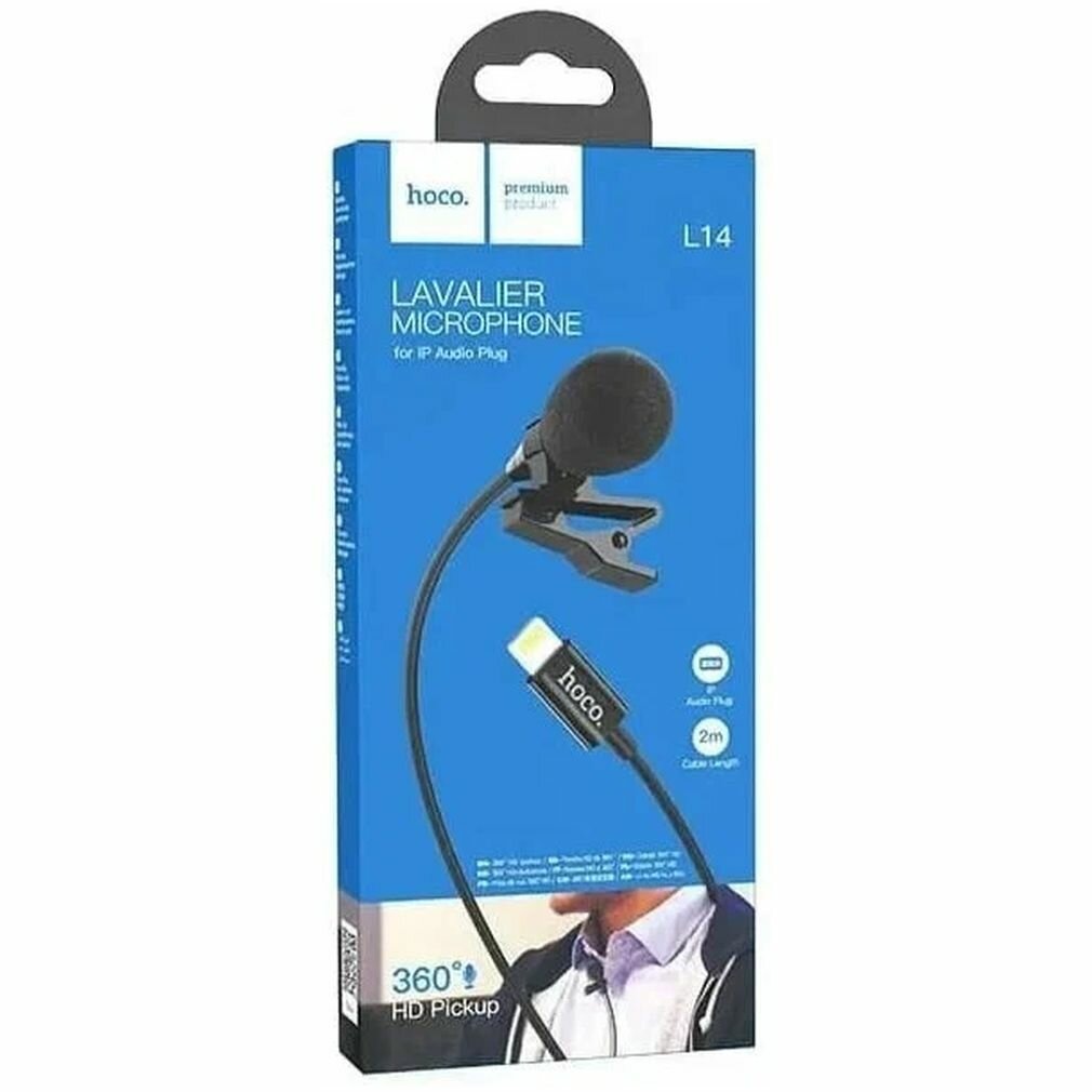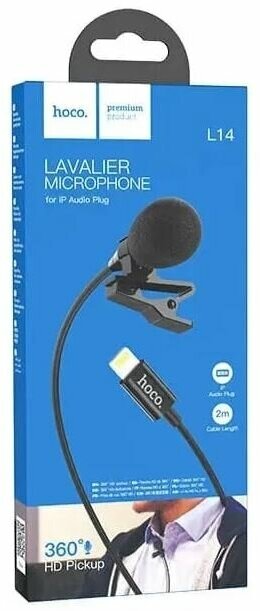10 цен на Hoco Петличный микрофон Hoco L14, Lightning, 2 м, чёрный