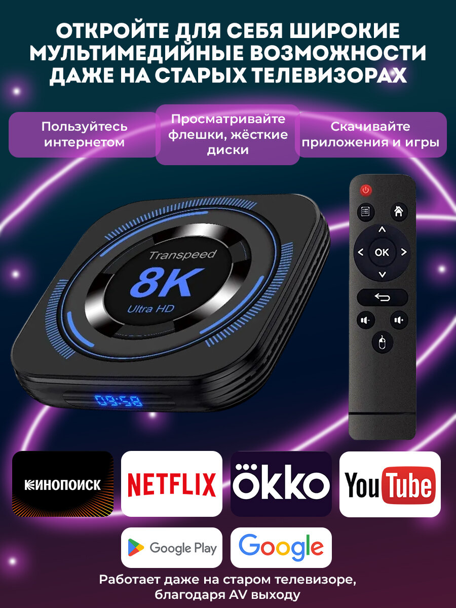 Смарт ТВ приставка "Transpeed 8K" с голосовым управлением 4/64 Гб