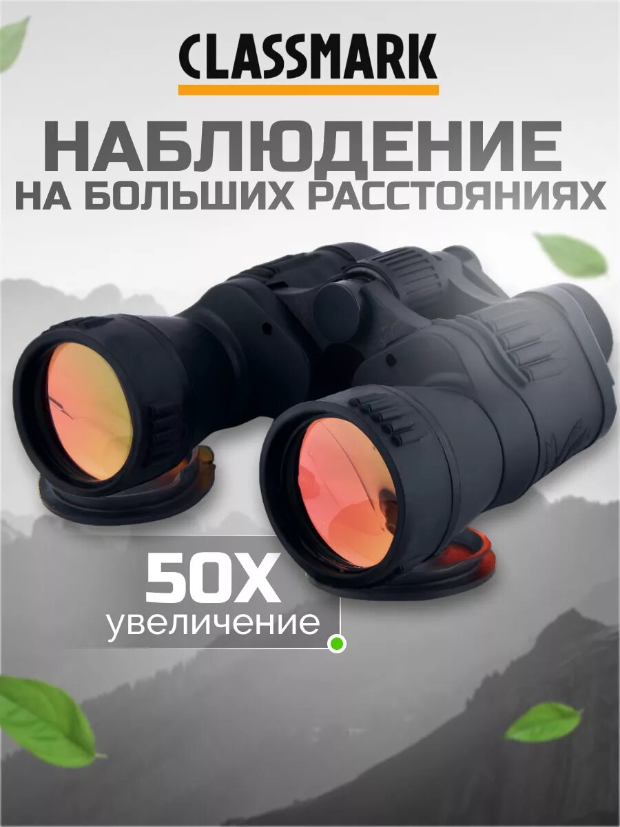 Бинокль мощный профессиональный Classmark туристический и охотничий, военный для охоты и рыбалки, походов, туризма, высокопрочный, увеличение 50х 860 ₽