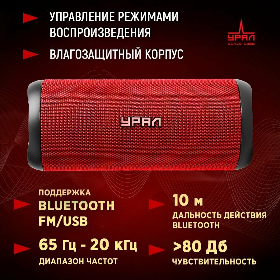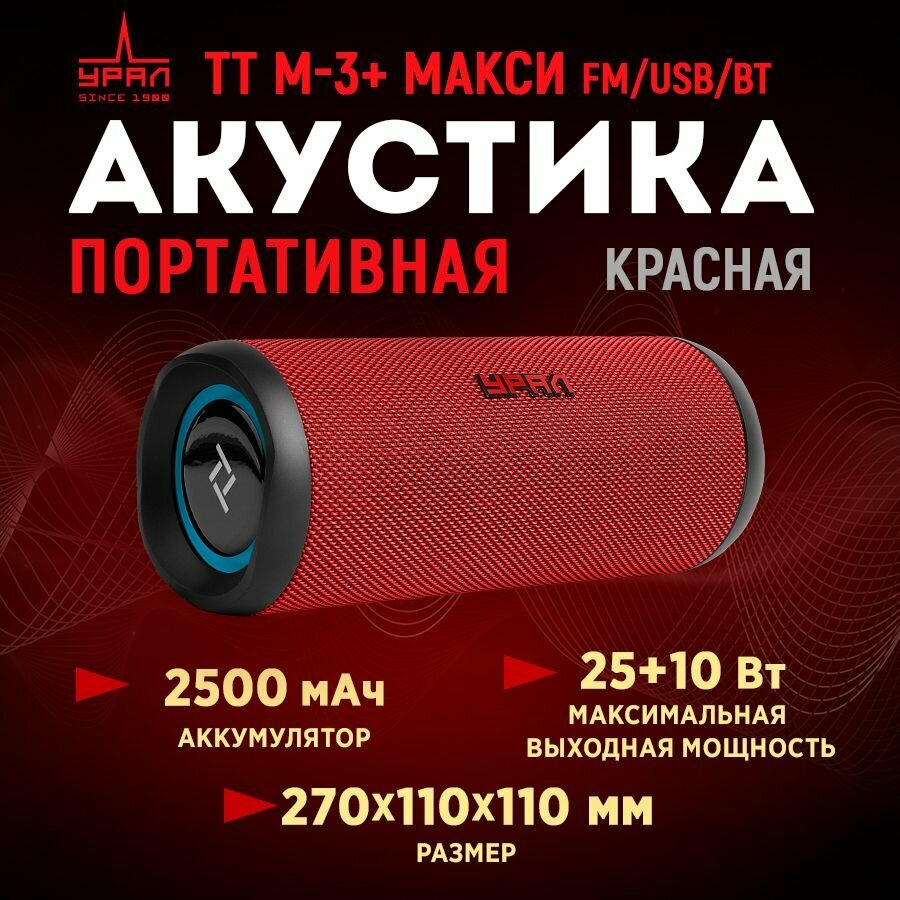 Портативная акустика URAL TT M-3+ макси FM/USB/BT (красная) информация: