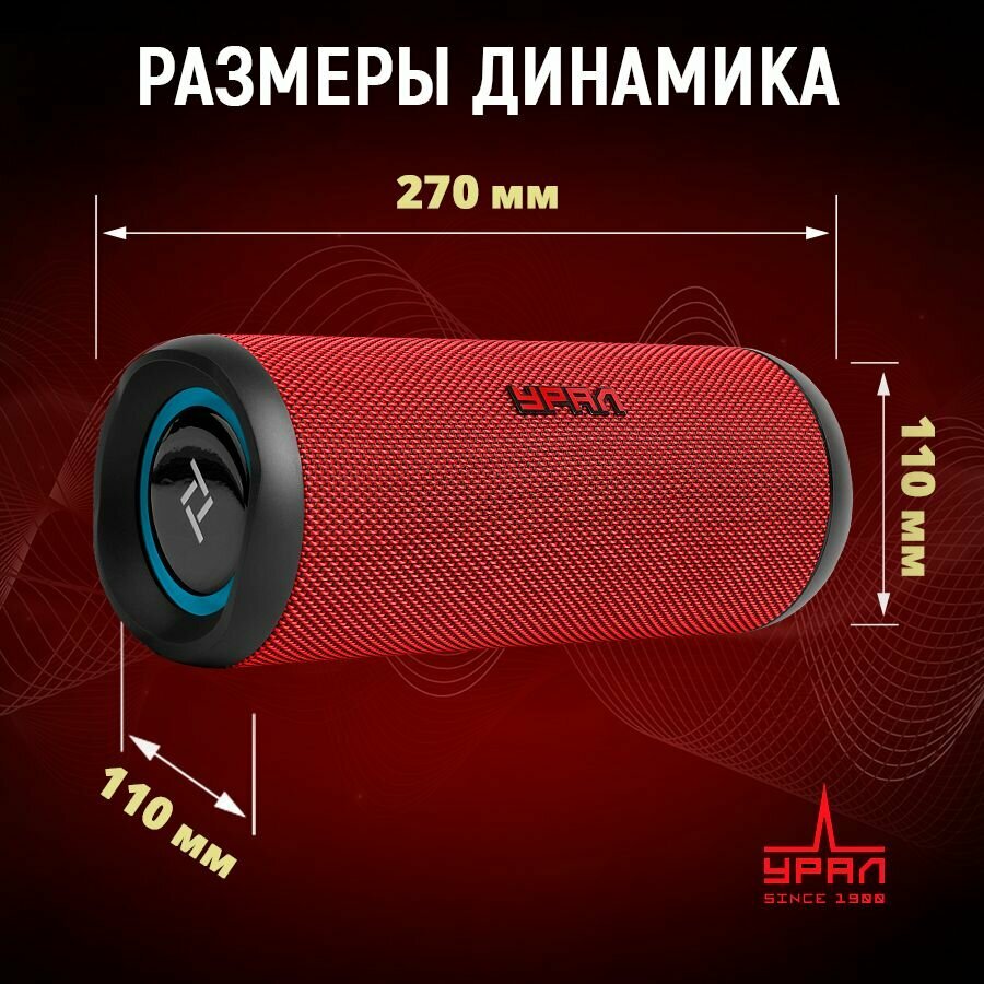 Портативная Bluetooth колонка Урал ТТ М4+ Урал, водонепроницаемая IP67, 30 Вт Мощность, TWS, FM-радио, беспроводная