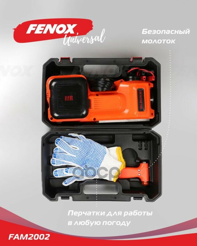 FENOX FAM2002 домкрат электрогидравлический с функцией компрессора и фонарем, в кейсе ,