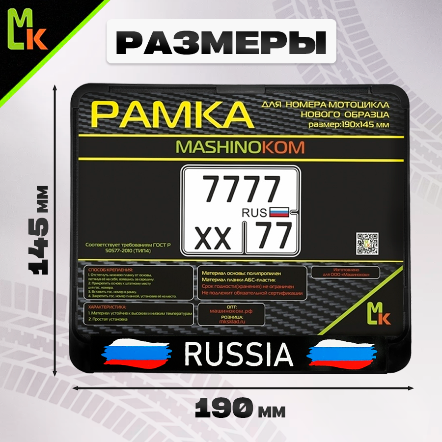 Мото рамка для номера мотоцикла 190х145 Russia информация: