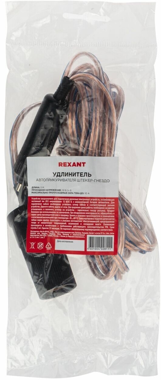 Отзывы на Удлинитель гнезда а/м прикур. штекер-гнездо 5,0 м REXANT электротовар