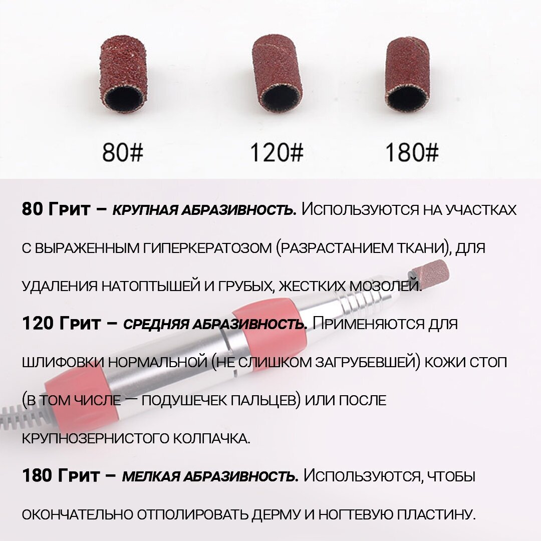 Абразивные (шлифовальные) насадки для аппаратного педикюра и маникюра, 120 Грит / 100шт. информация: