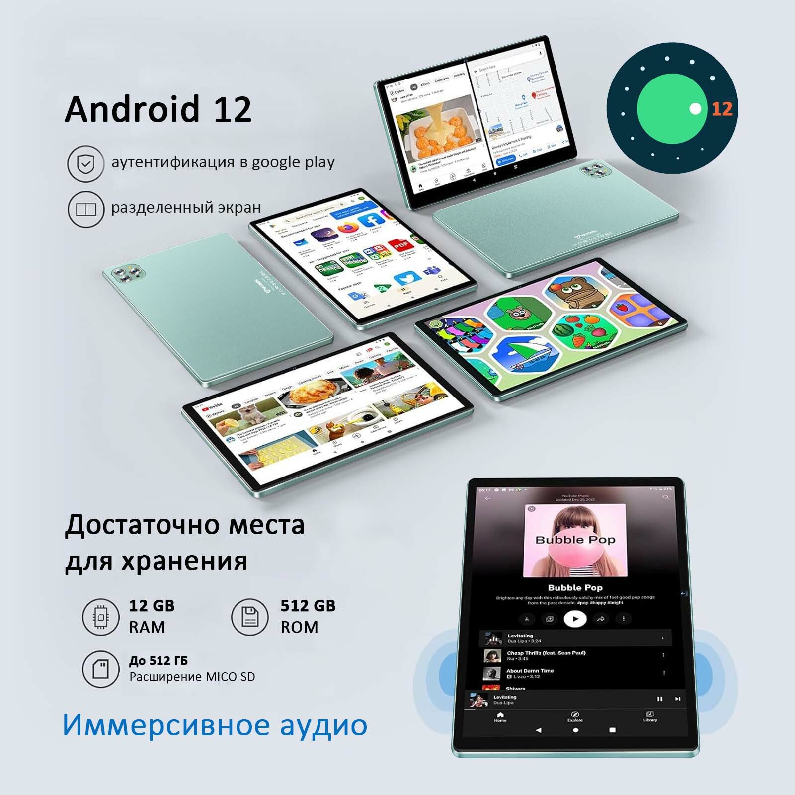Планшет VANWIN Pad V62(2024), 10.1" 12/512ГБ, Wi-Fi, Android 12, Зеленый,планшет с клавиатурой информация: