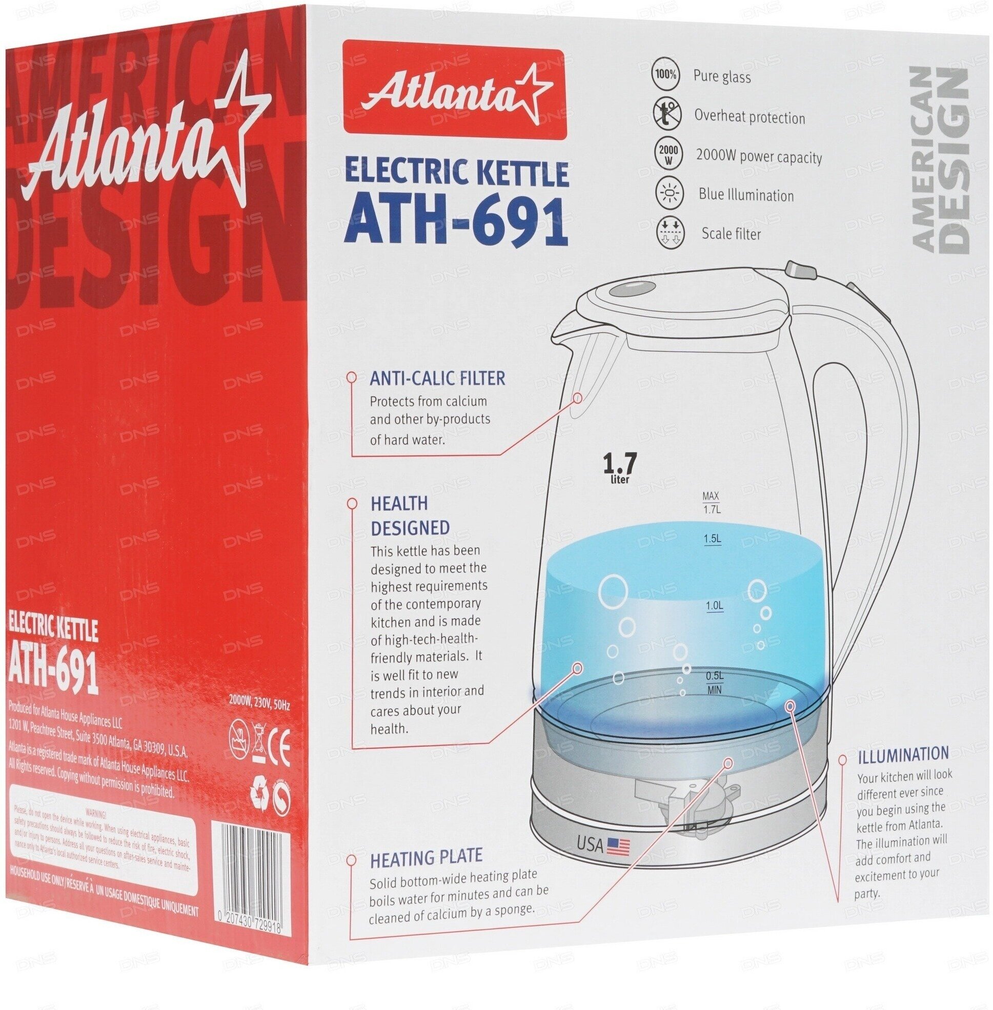 Чайник стеклянный электрический, ATH-691, Atlanta 4 027 ₽