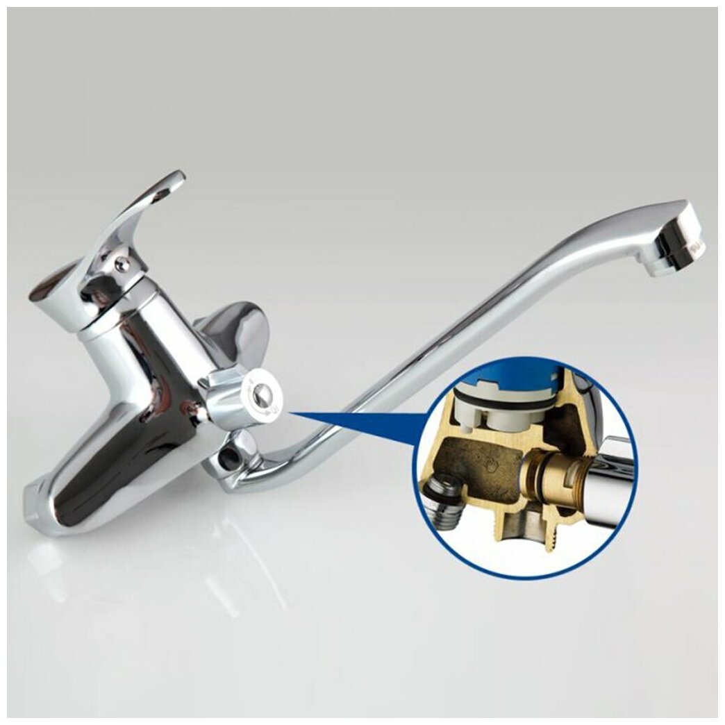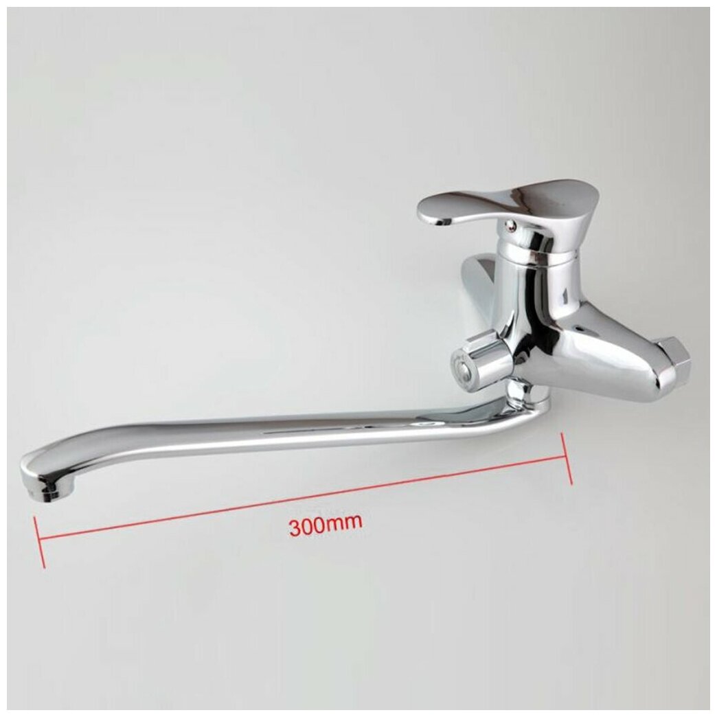 Смеситель на раковину настенный Эверест B46-350 с круглым поворотным изливом, кран-буксы 1/2", хром