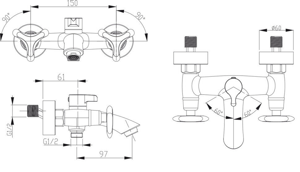 Смеситель для ванны KAISER Trio, 57022-2 информация: