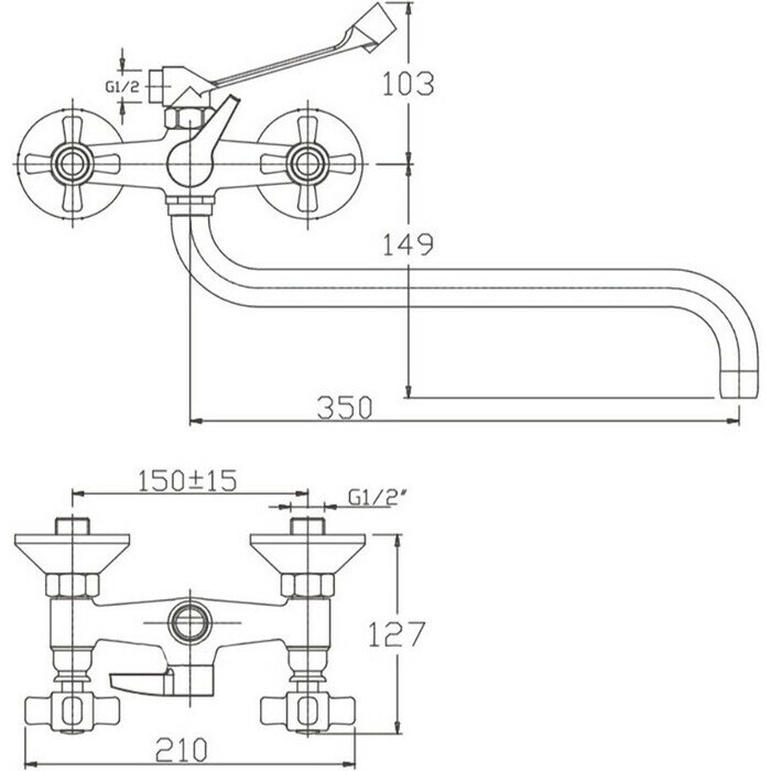 Смеситель на раковину настенный Эверест B46-350 с круглым поворотным изливом, кран-буксы 1/2", хром