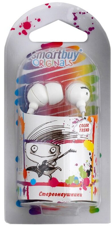 Наушники-вкладыши SmartBuy "Color Trend", 1.2м, белый