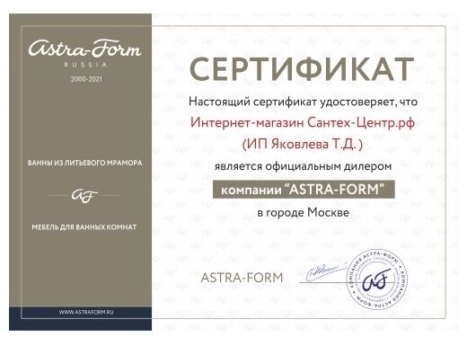 Ванна Astra-Form Нейт 170x80 белая иск. камень 37 720 ₽