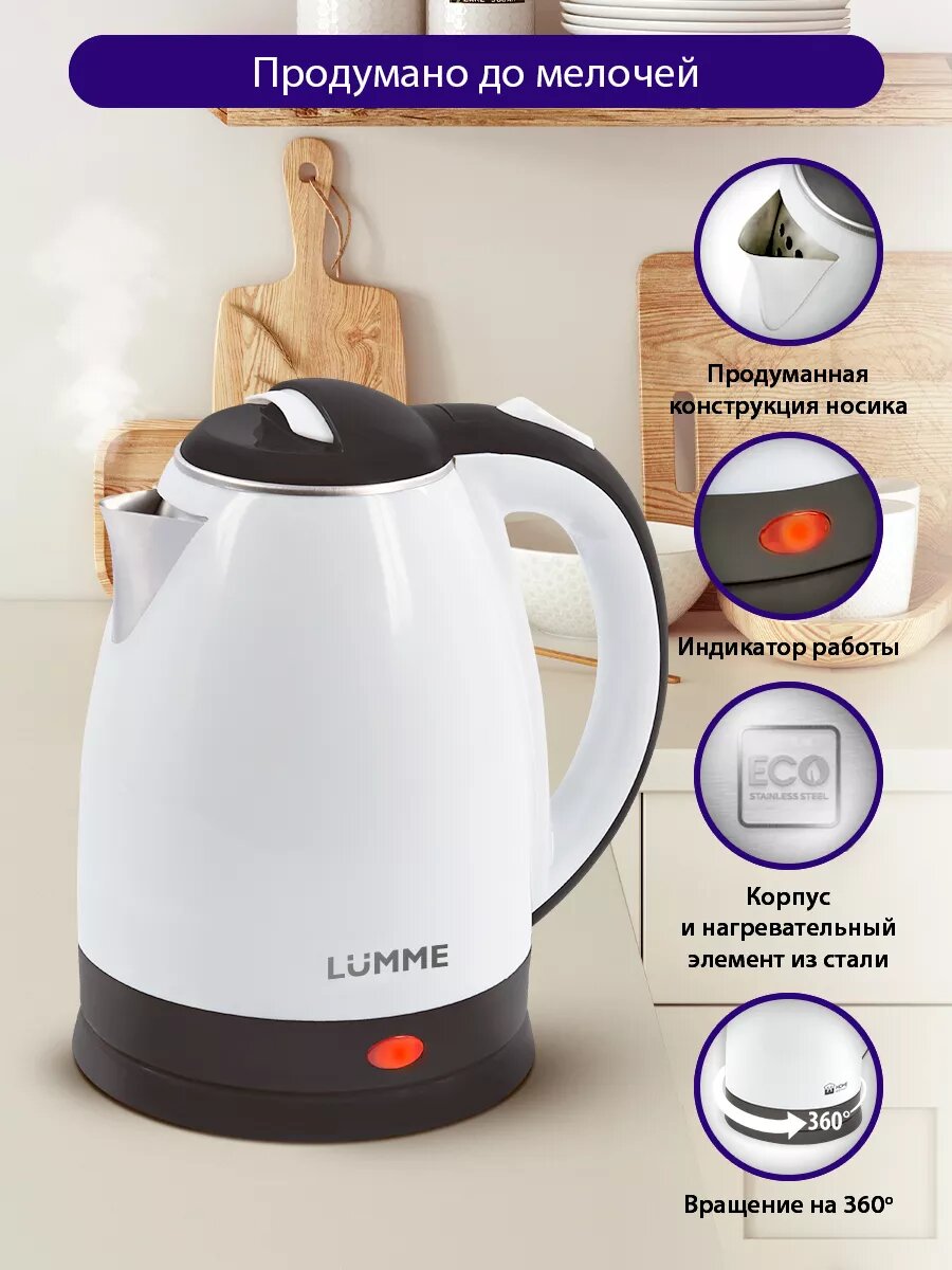 Электрический чайник LUMME LU-KT4112A черный металлический, эффект термоса 2 л