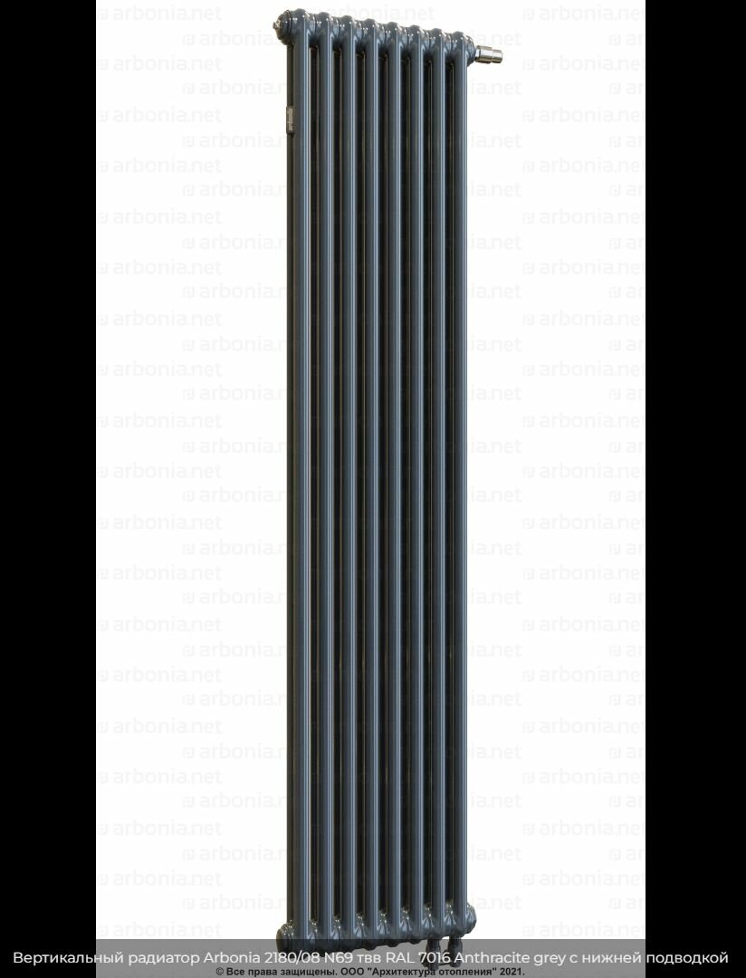 Вертикальный радиатор Arbonia 2180/08 N69 твв RAL 7016 Anthracite grey с нижней подводкой, 8 секции. Cерый антрацит информация: