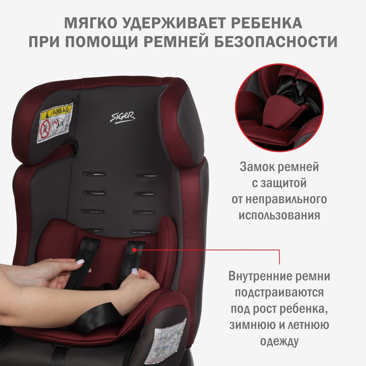 Автокресло детское Siger Диона от 0 до 25 кг, рубиново-серый информация: