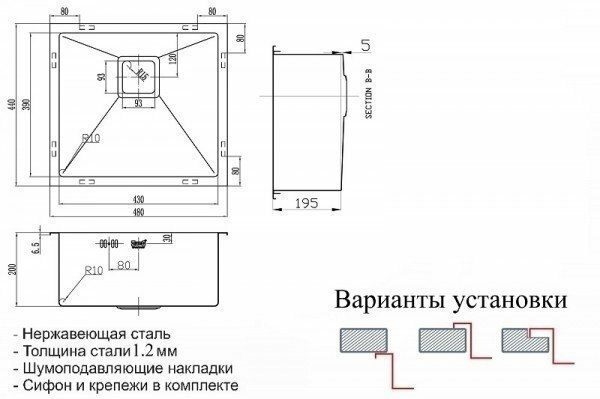 Мойка FABIA 62322L сатин врезная 78х48 см левая + большой сифон с переливом