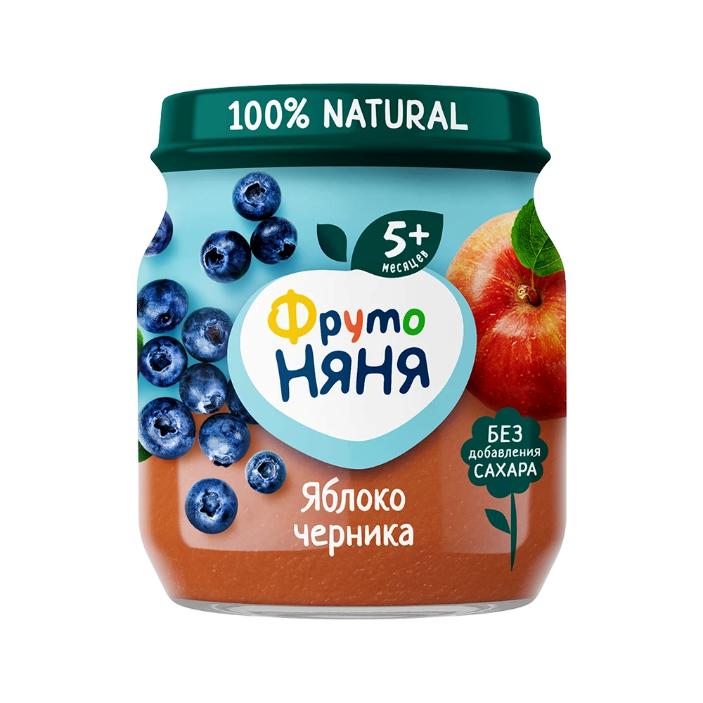 Пюре фрутовое ФрутоНяня с 5 месяцев, яблоко и черника, 100 г, 12 шт.
