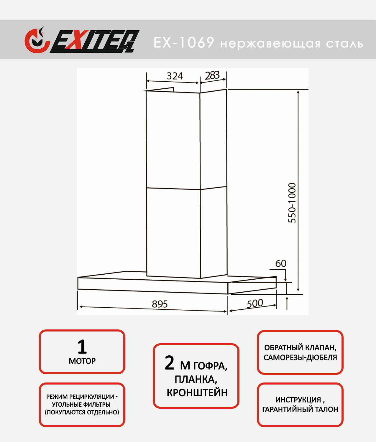 Кухонная вытяжка Exiteq EX-1069 информация: