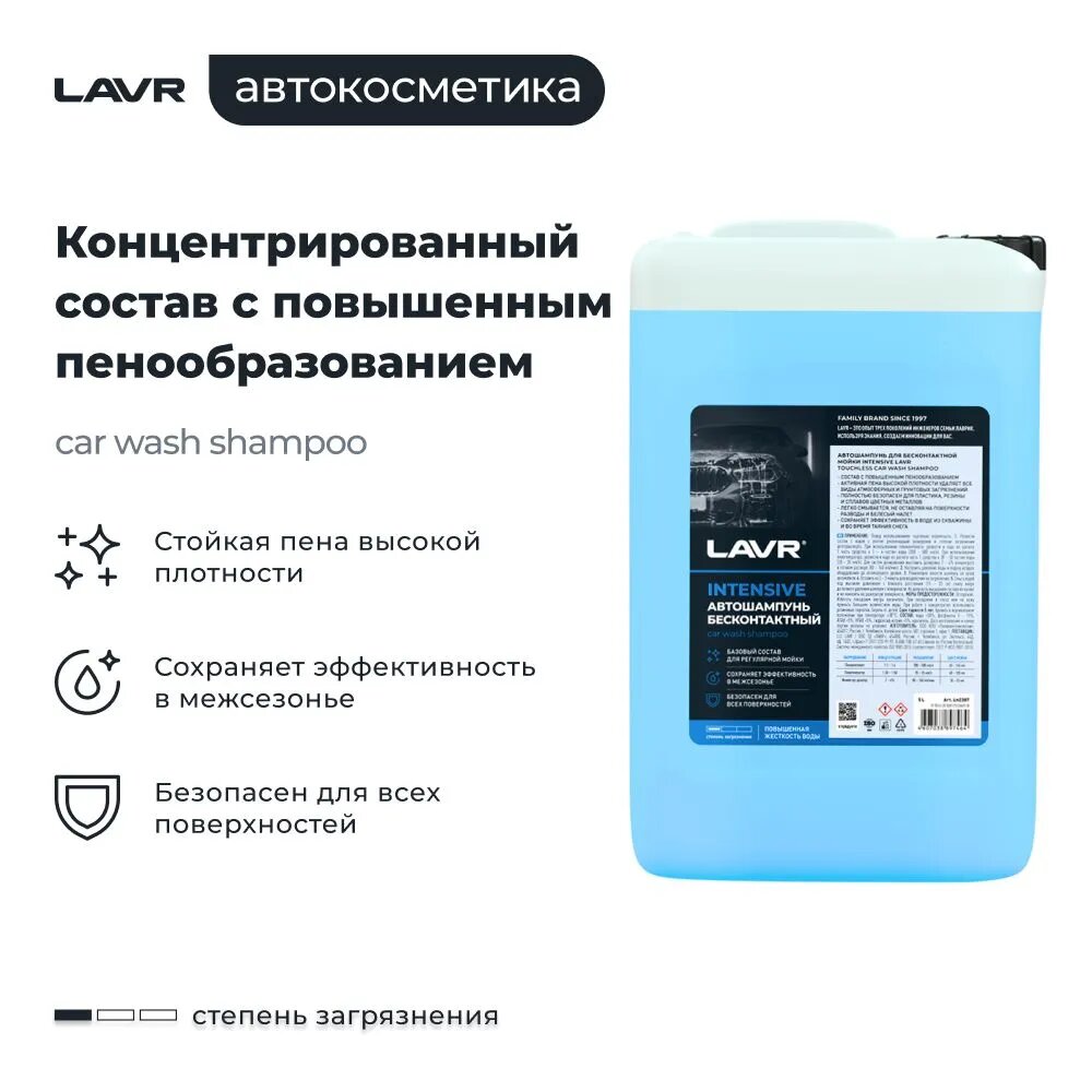 Автошампунь для бесконтактной мойки, LAVR Intensive, LN2307, повышенная пенность 5 л. информация: