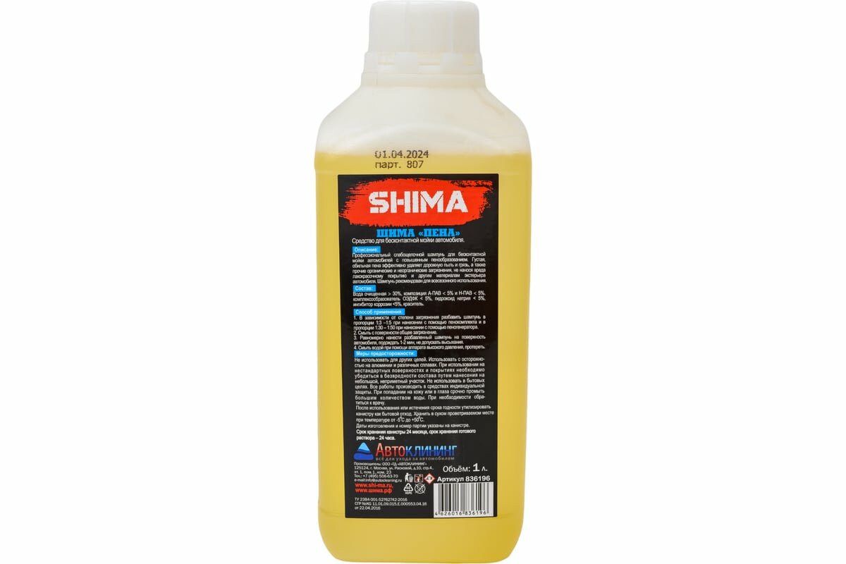 SHIMA Автошампунь для бесконтактной мойкиFOAM 1 л, 4626016836196 информация: