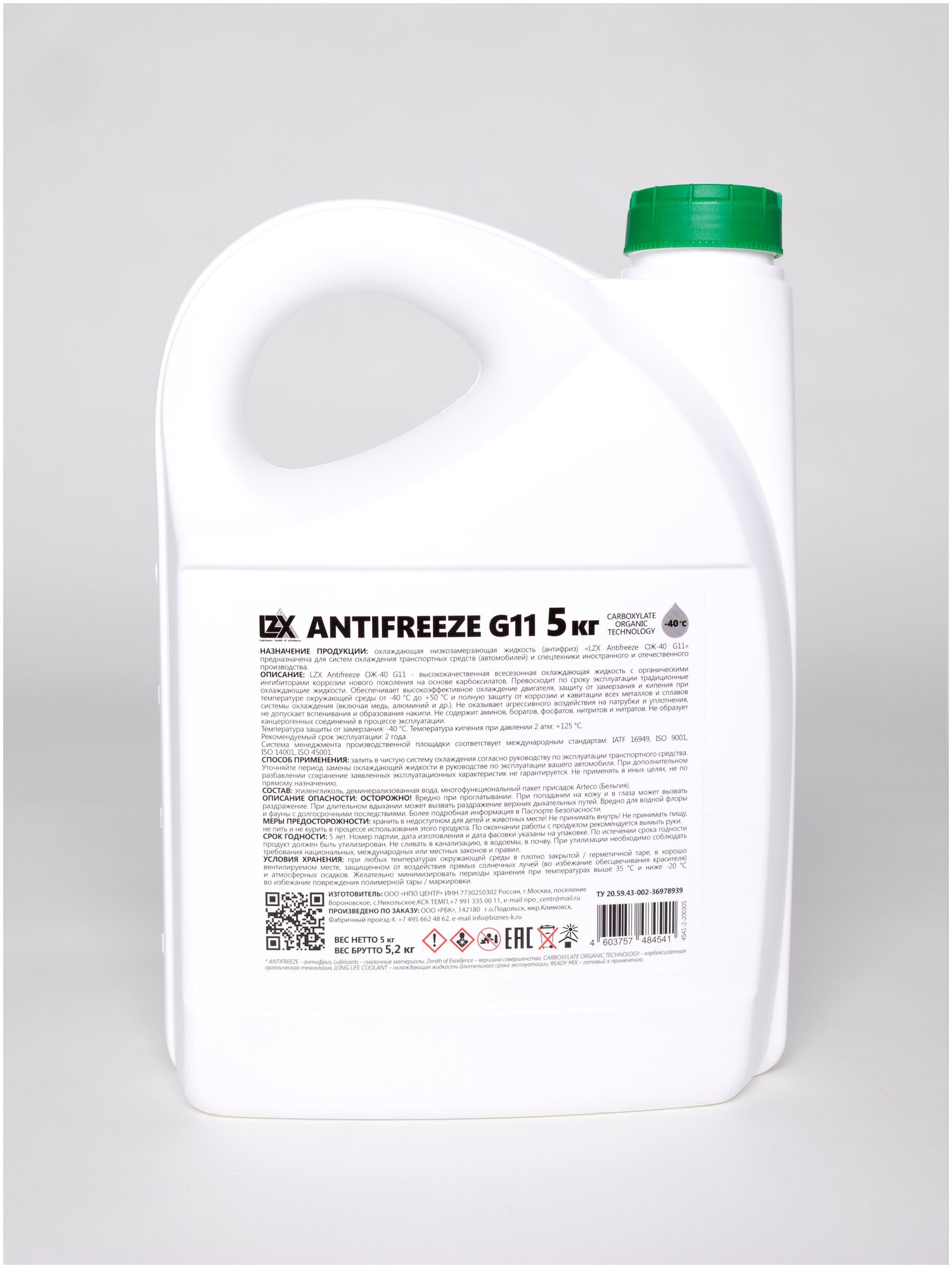 Антифриз, LZX G-11 ОЖ-40 (-40°C), зелёный, 5 кг информация:
