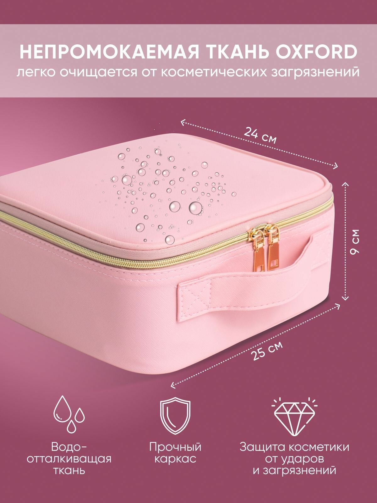 Косметичка-Органайзер бьюти-кейс "YESMISS"водостойкая, для косметики, с 6 перегородками, светло-розовая 4 100 ₽