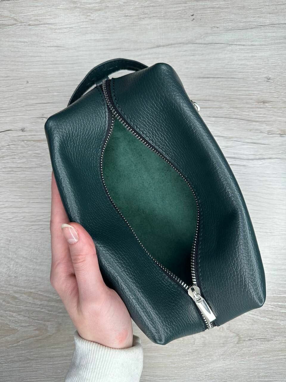 Несессер кожаный пулл-ап зеленый/Косметичка дорожная большая из натуральной кожи/Органайзер женский мужской кожа 2 100 ₽