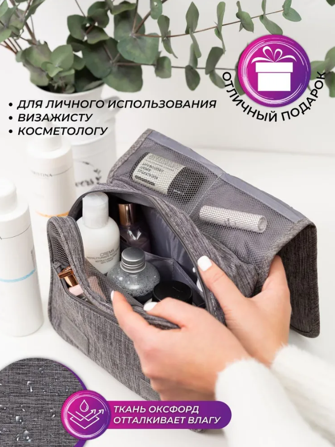 10 цен на Несессер дорожный органайзер , косметичка 25х19х30 см, серый