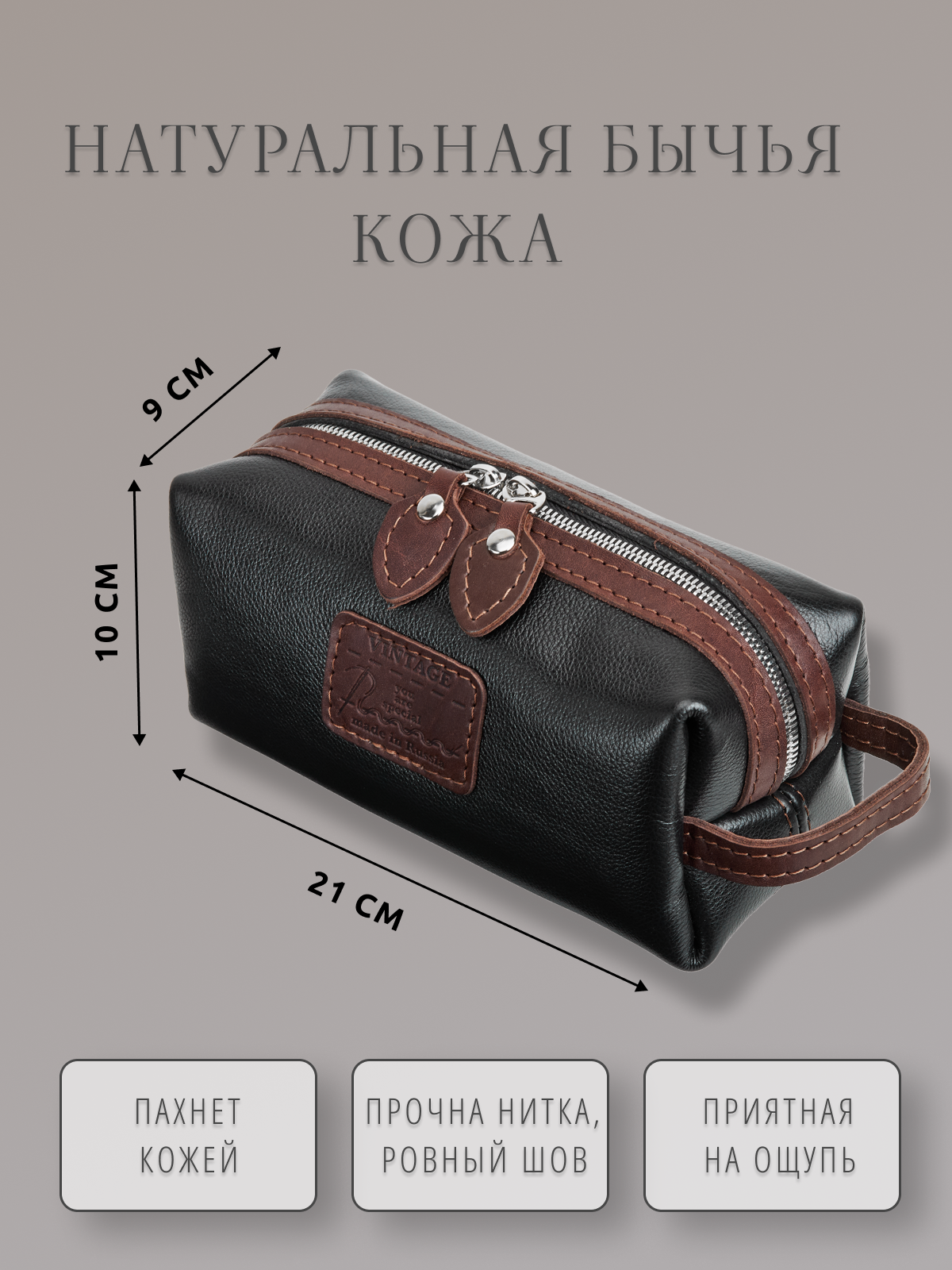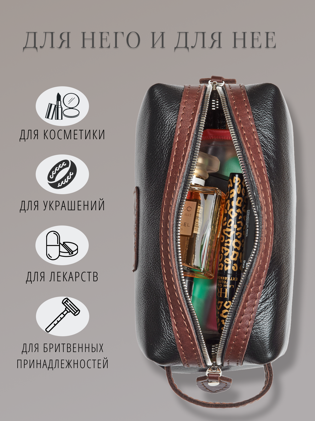 10 цен на Косметичка дорожная женская мужская органайзер для косметики несессер из натуральной кожи пенал большой для кистей