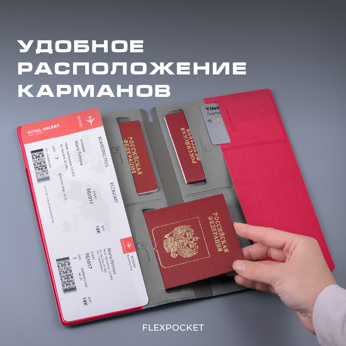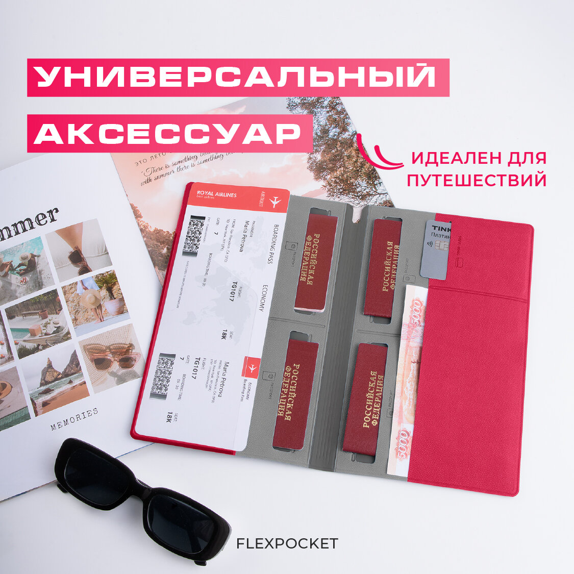 Органайзер для путешествий семейный Flexpocket / Турконверт / Авиахолдер / Папка для документов, загранпаспорта, цвет Малиновый информация: