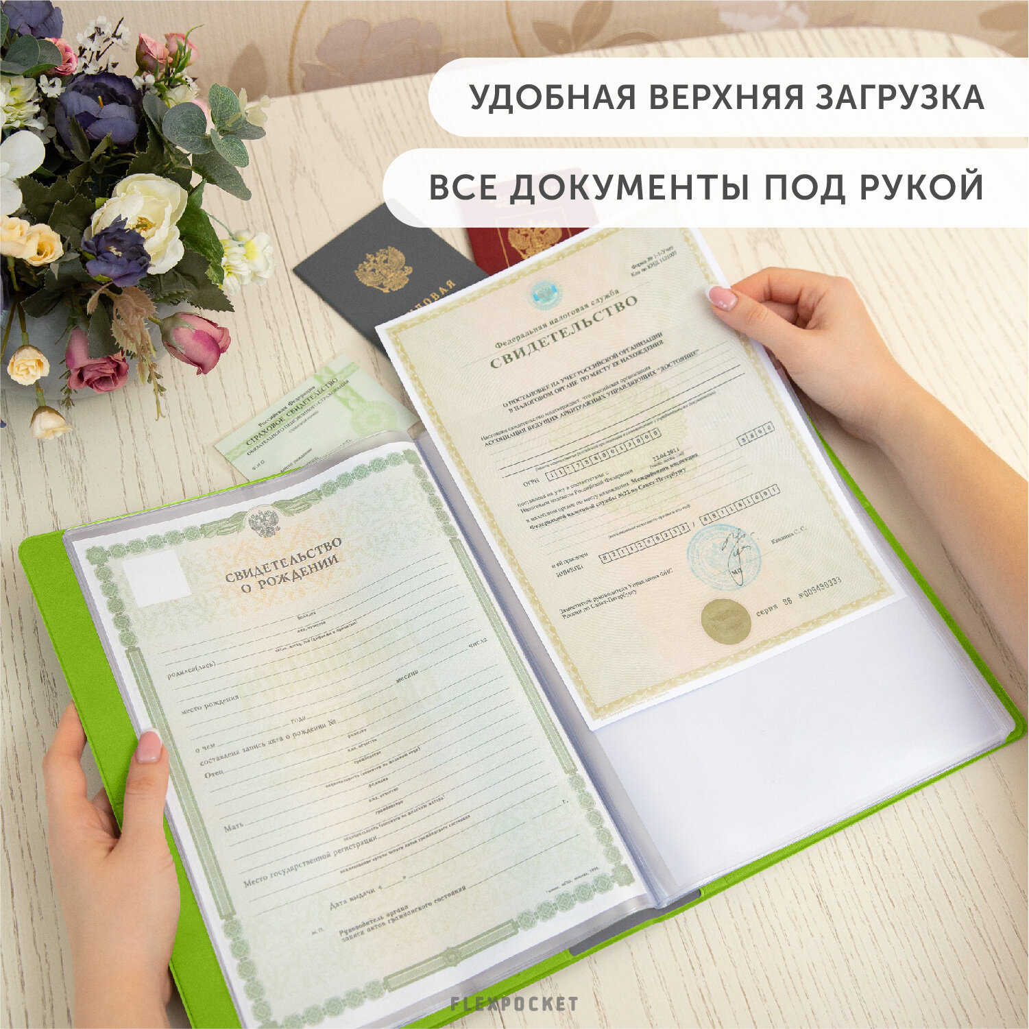 Папка для семейных документов из экокожи Flexpocket, Органайзер для документов, формат А4, цвет Зеленый информация: