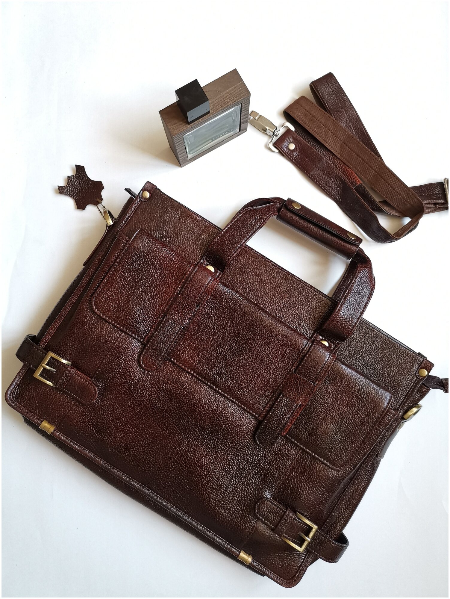 Портфель мужской Black Buffalo, натуральная кожа, сумка кожаная, деловая, для ноутбука, документов А4, коричневый, зернистая кожа информация: