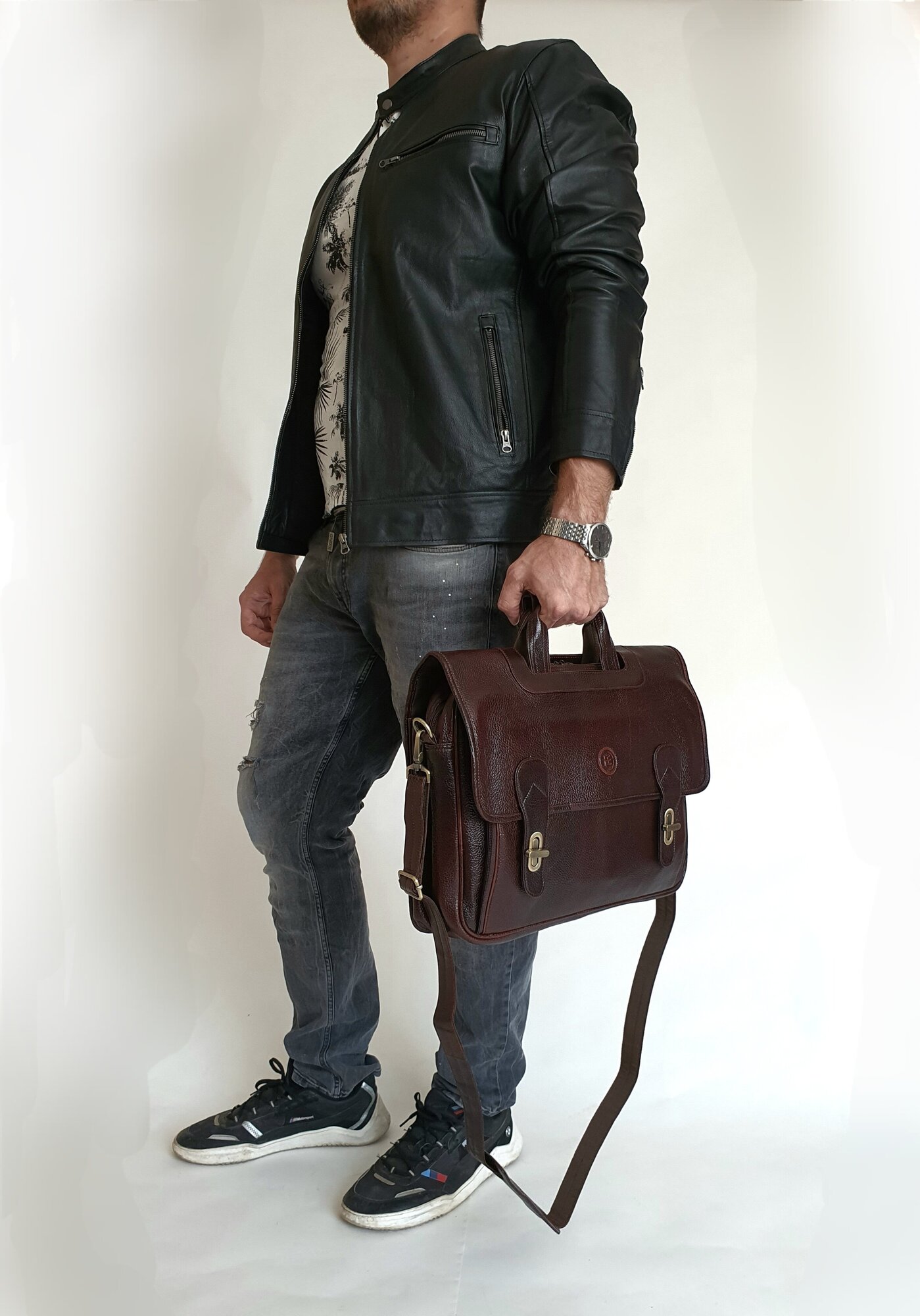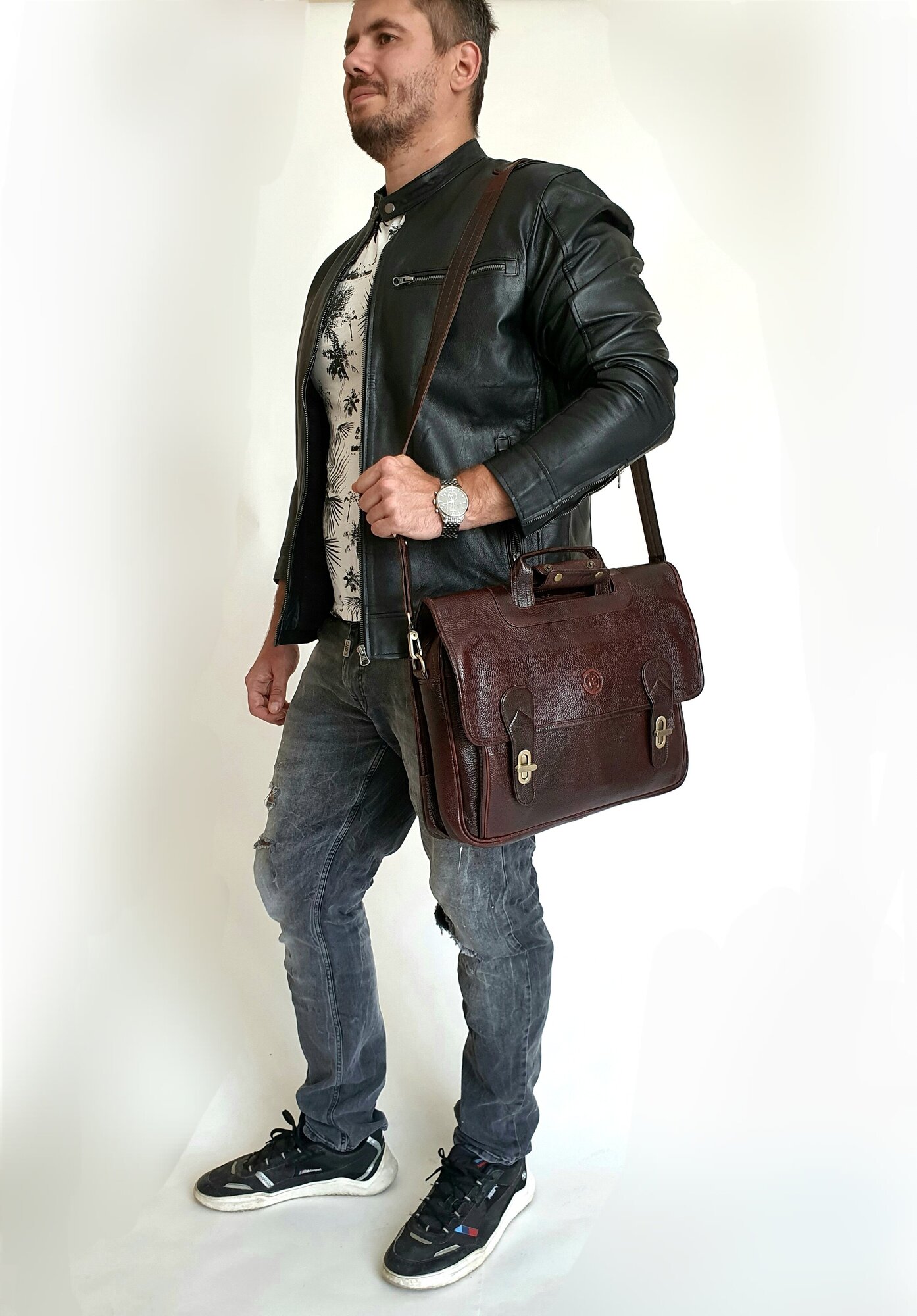 Портфель мужской Black Buffalo, натуральная кожа, сумка через плечо, кожаная, деловая, для ноутбука, документов А4, коричневый насыщенный информация: