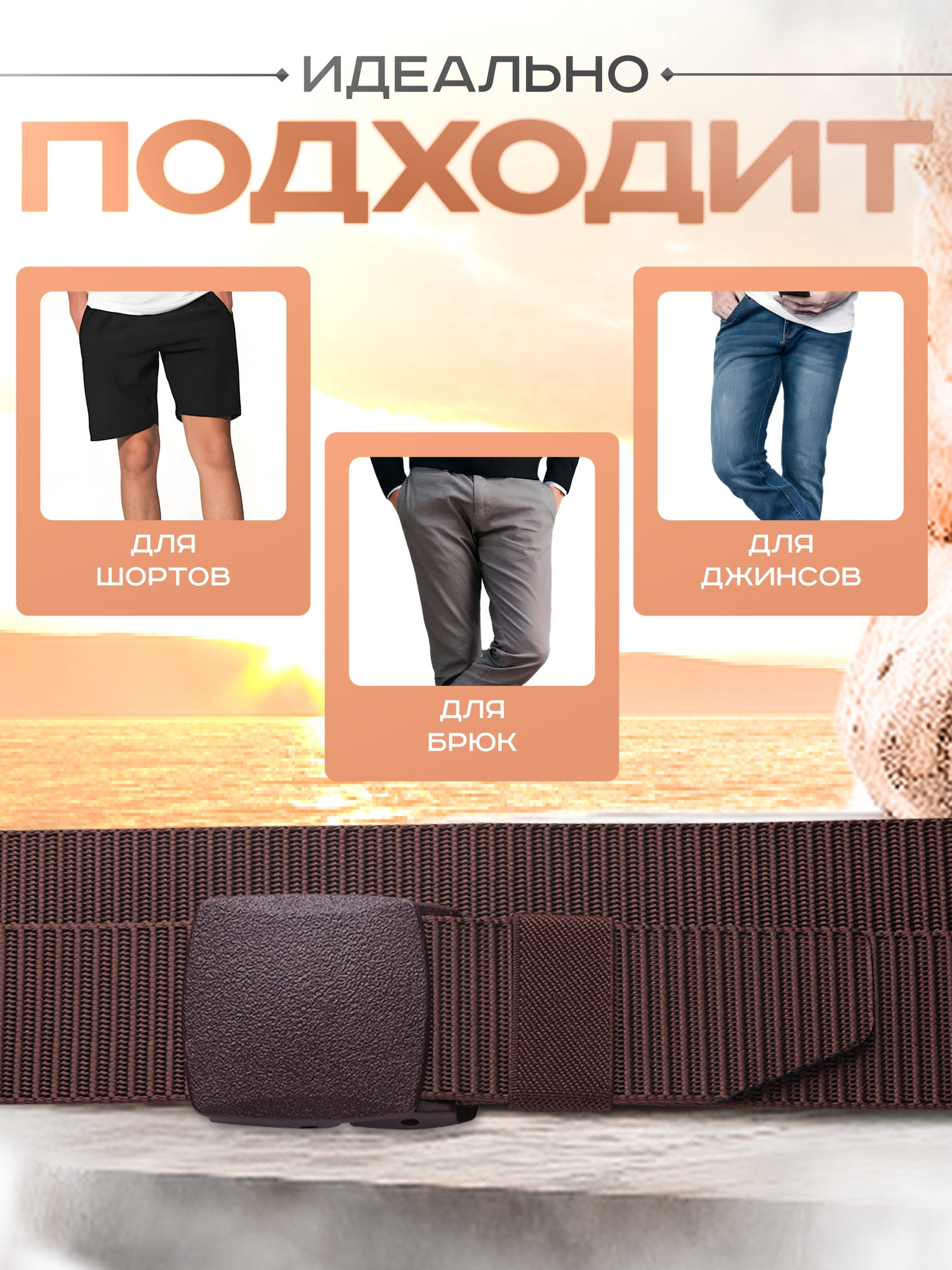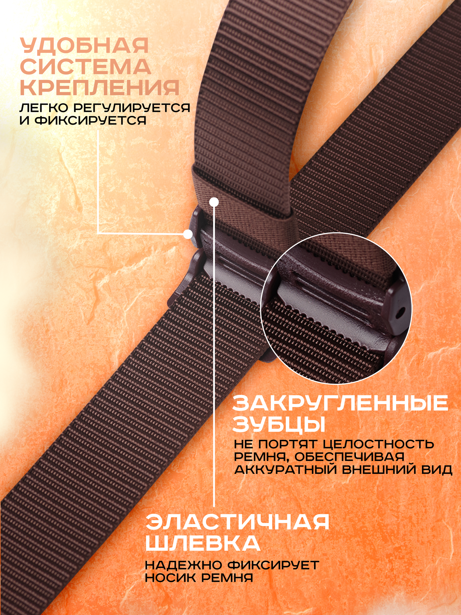 Отзывы на Ремень текстильный мужской, женский зажимной 120см, цвет коричневый