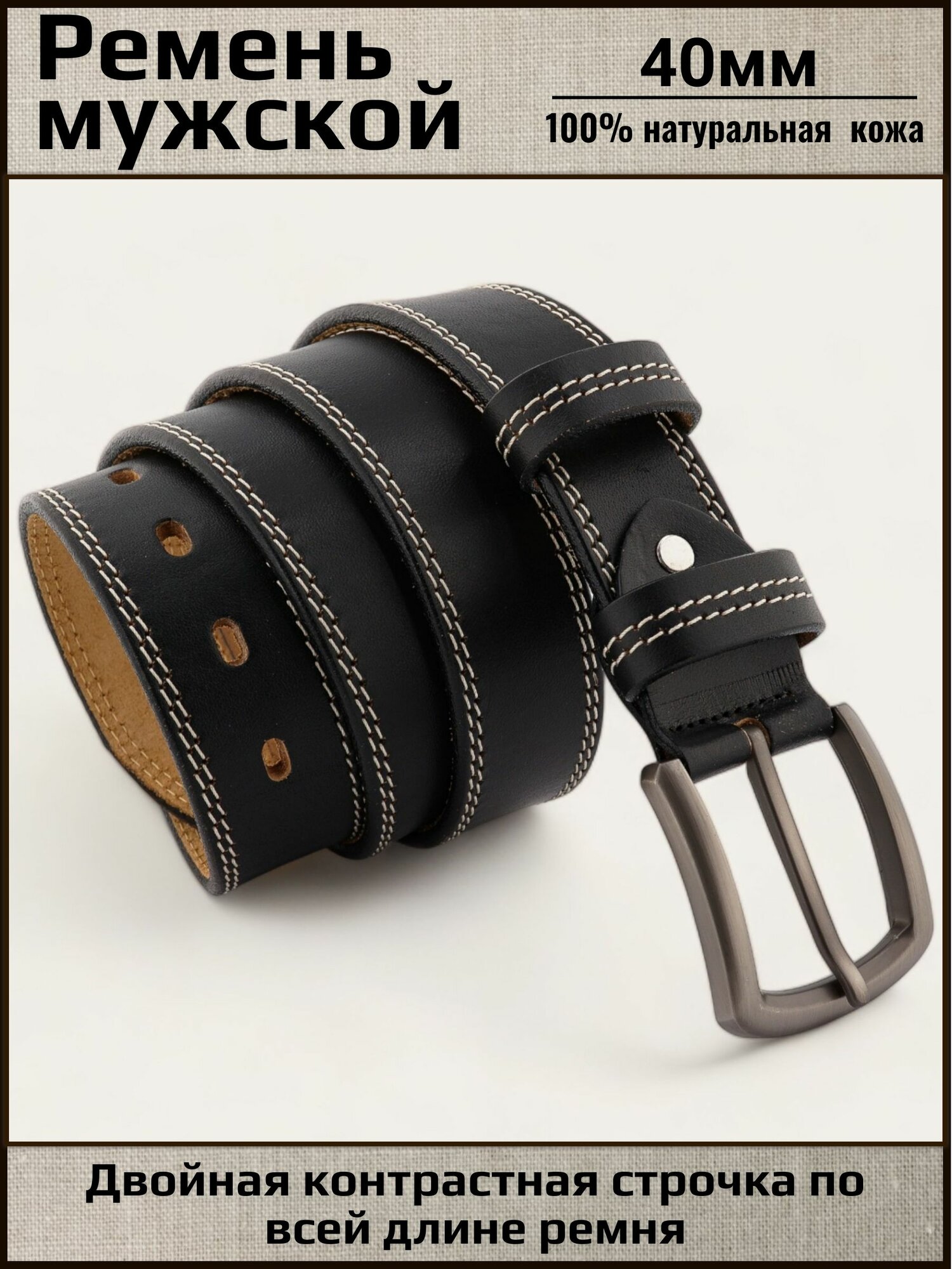 Отзывы на Ремень мужской кожаный Aksy Belt черный, 40мм, белая строчка, Италия, 120 см