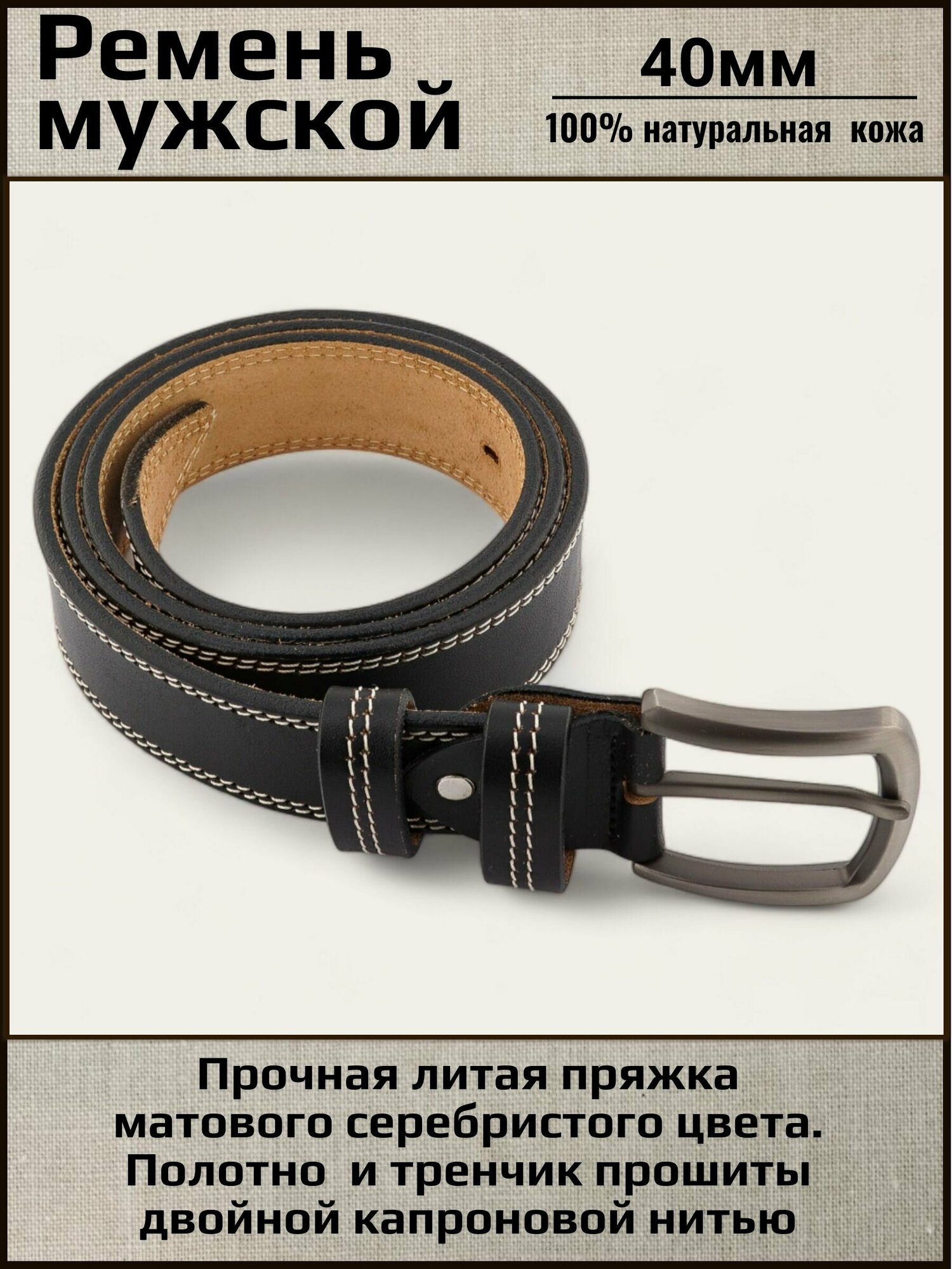 Отзывы на Ремень мужской кожаный Aksy Belt черный, 40мм, белая строчка, Италия, 115 см