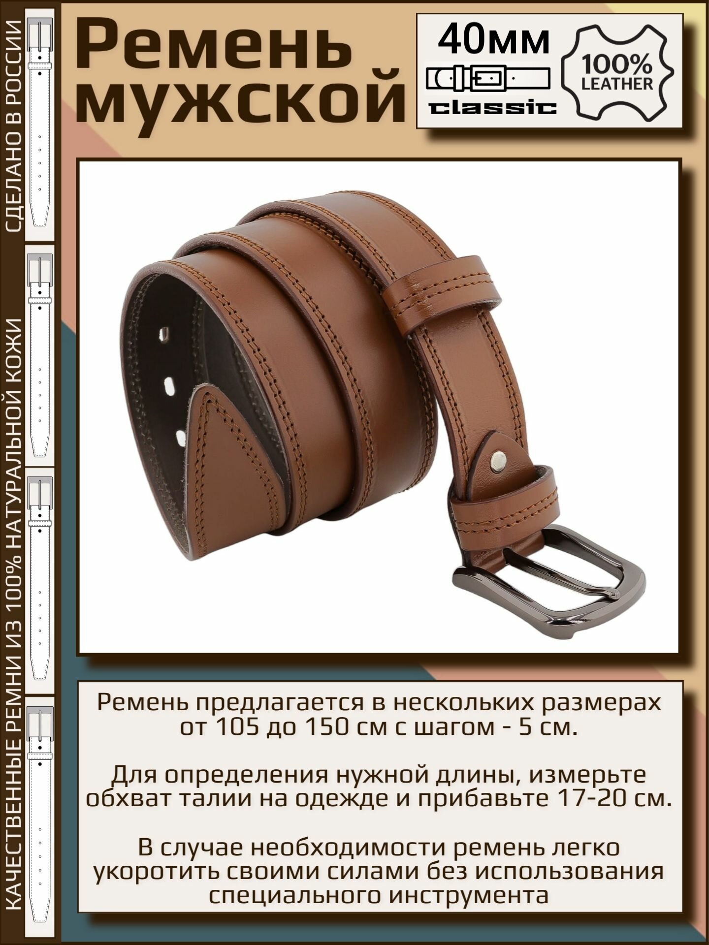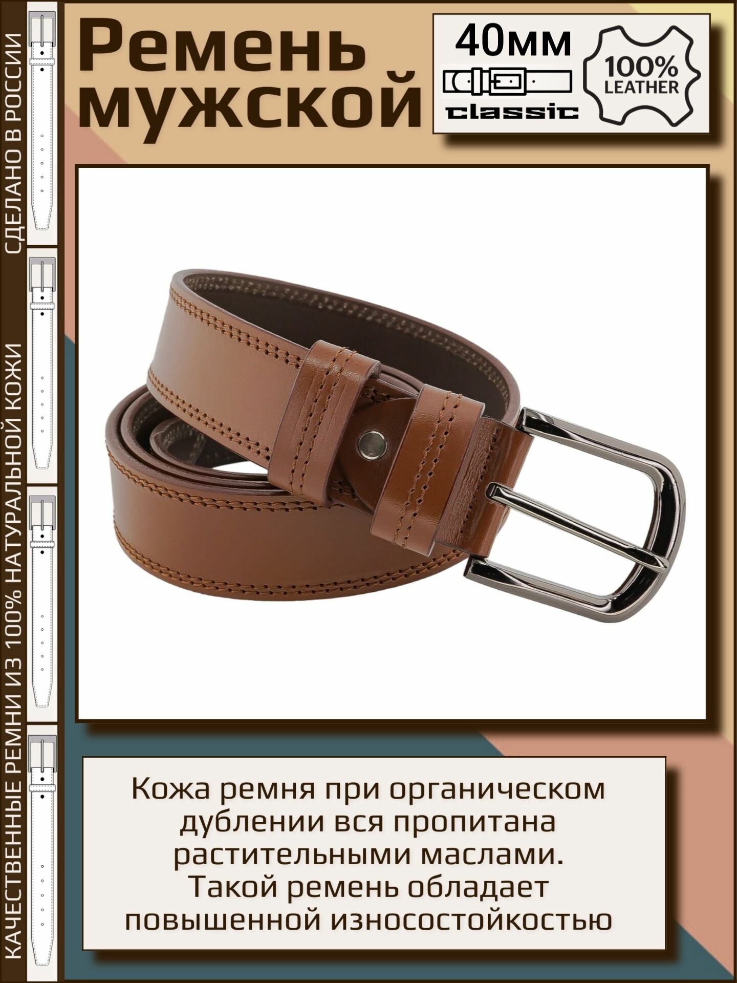 Отзывы на Ремень мужской кожаный Aksy Belt коричневый, 40мм, 2 строчка, Италия, темное серебро, 110 см