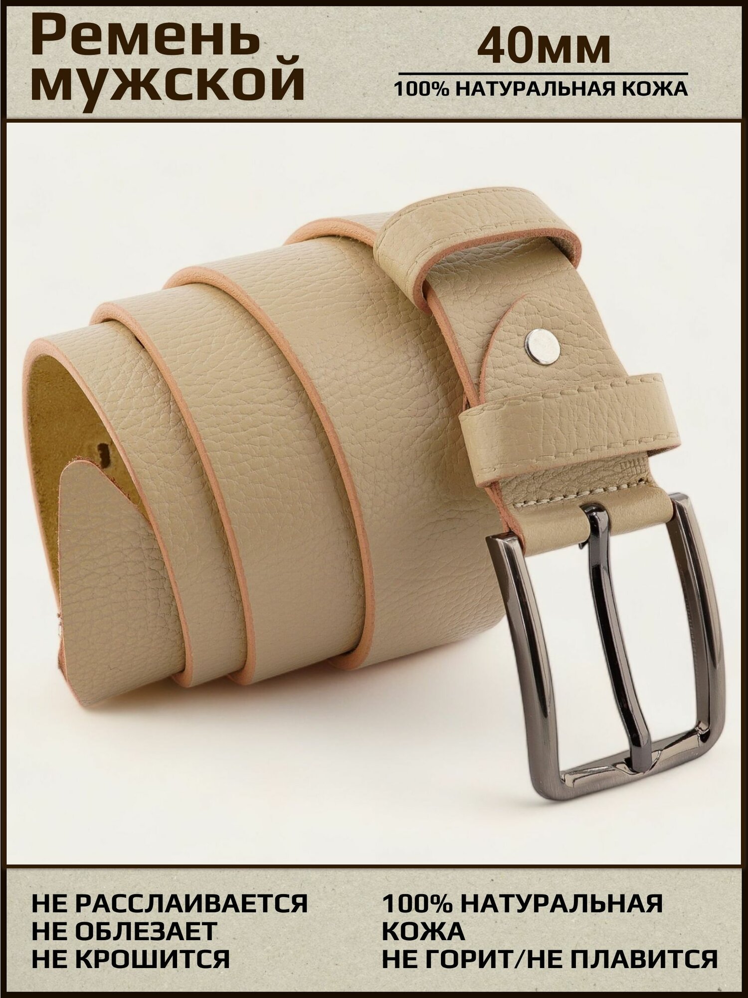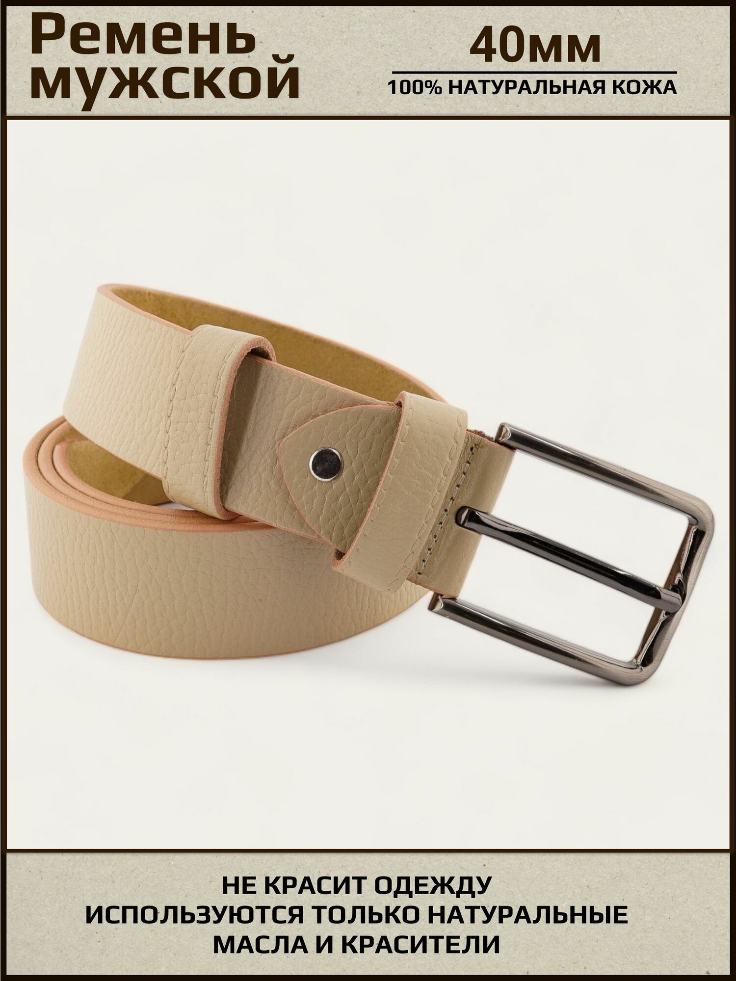 Отзывы на Ремень мужской кожаный, AKSY BELT, 40 мм, бежевый, фактурный, 110 см