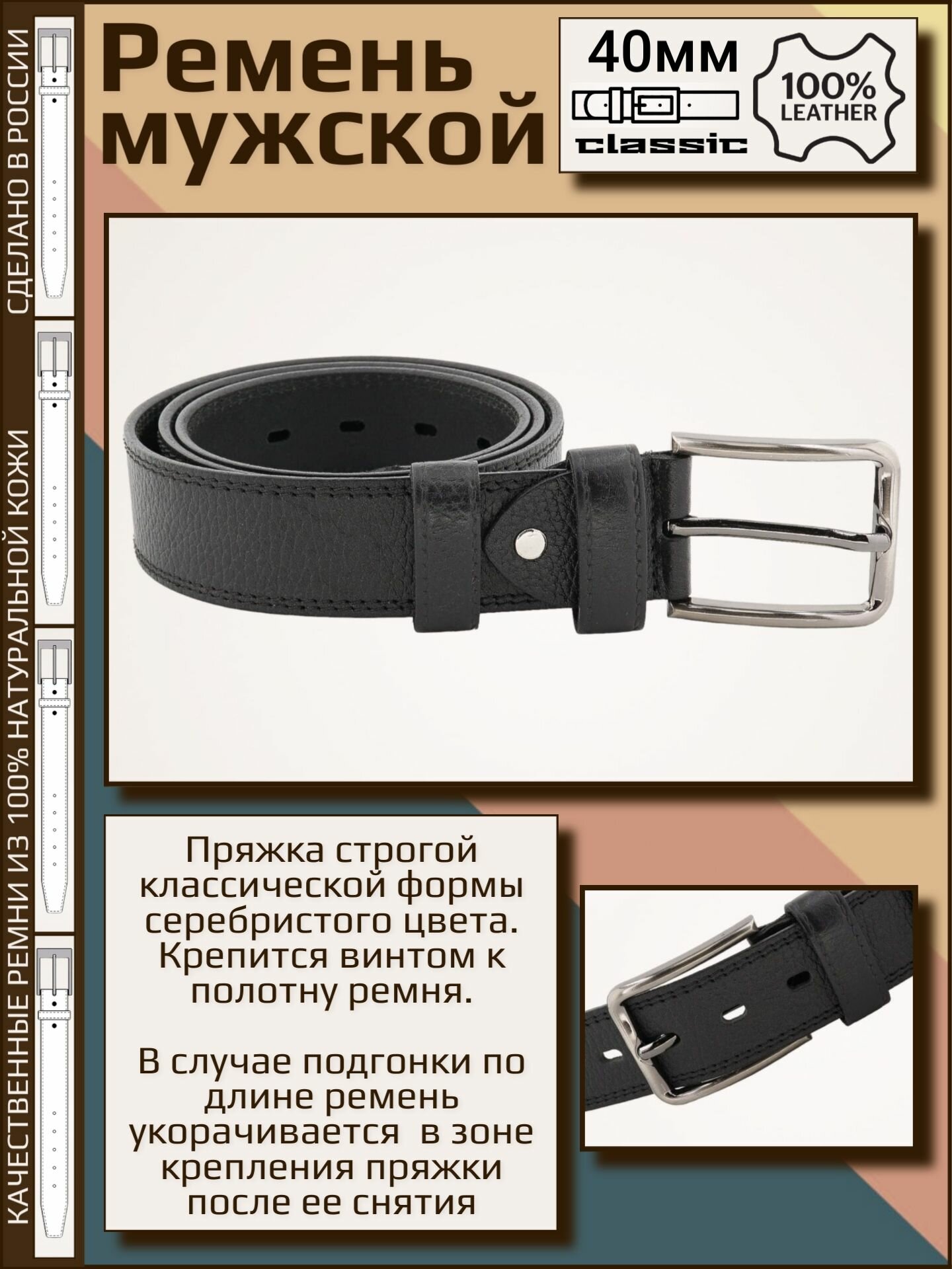 10 цен на Ремень мужской кожаный, AKSY BELT, 40 мм, черный, фактурный, 2 строчка, 135 см (BPr C40-078 зерн СТР)