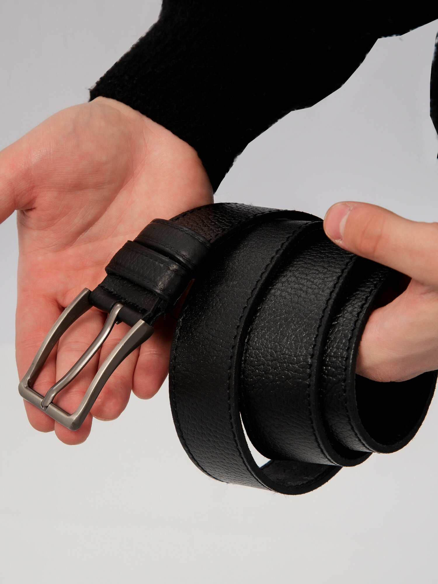 Ремень мужской "Кожаный прошитый" с пряжкой из натуральной кожи, черный, ширина 4 см информация: