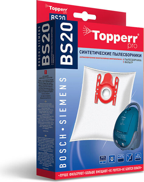 Аксессуары для пылесосов Topperr Синтетический пылесборник Тopperr BS 20 для пылесосов Bosch, Siemens, 4 шт. + 1 фильтр 1 050 ₽