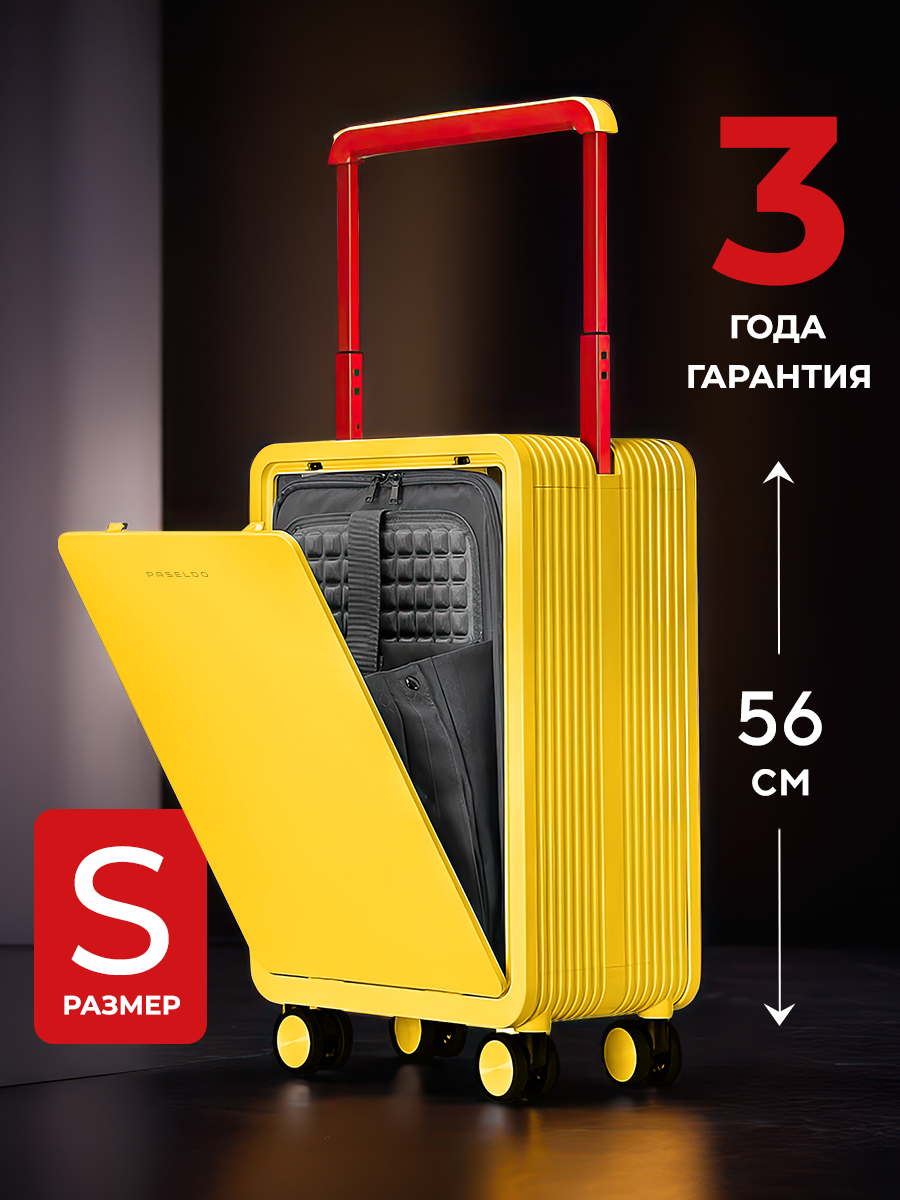 Отзывы на Чемодан Paseldо, 20 дюйма, 33 L, размер S, желтый, ручная кладь с широкой ручкой