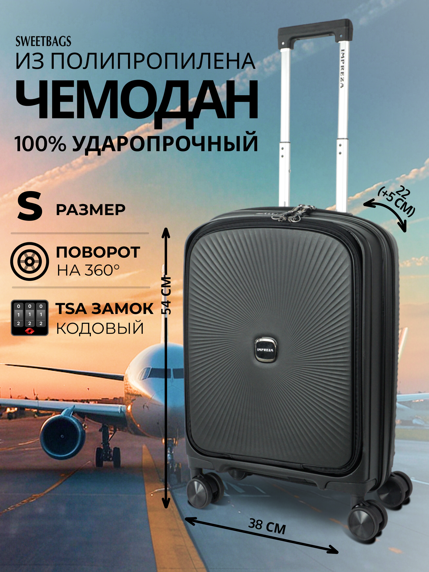 Чемодан Sweetbags маленький (ручная кладь) из полипропилена с расширением на 4-х колесах с TSA замком (Insight) черный S информация: